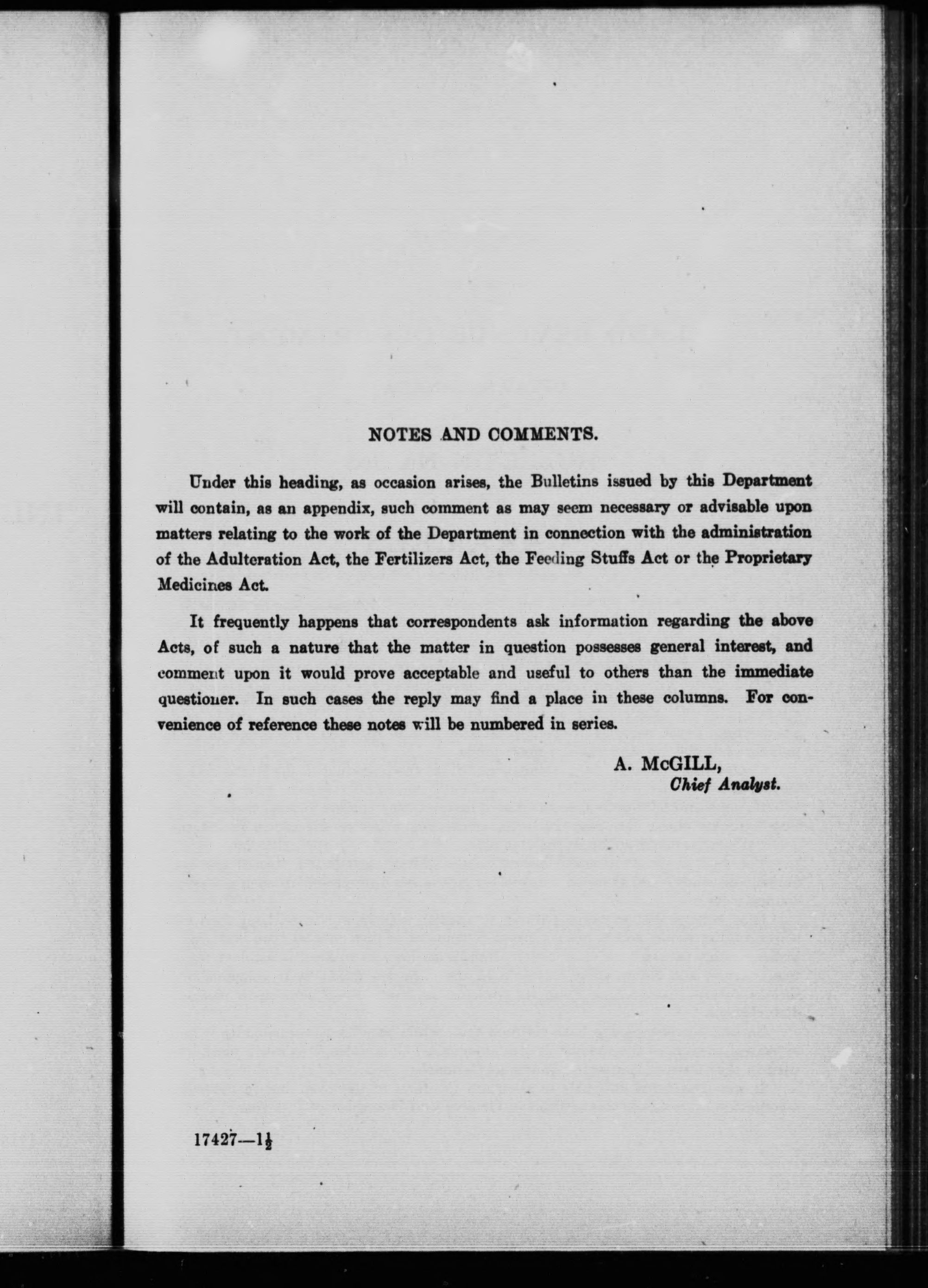 At head of title: Laboratory of the Inland Revenue Department. Ottawa, Canada.