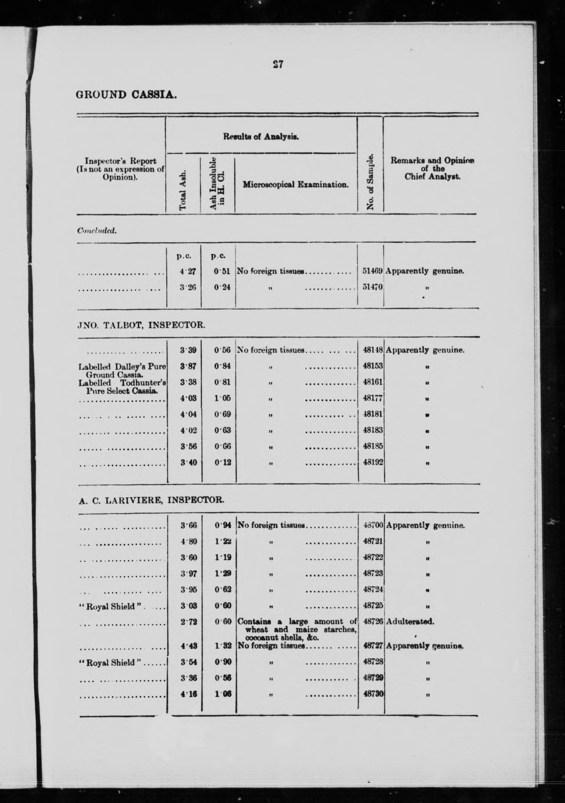 At head of title: Laboratory of the Inland Revenue Department. Ottawa, Canada.