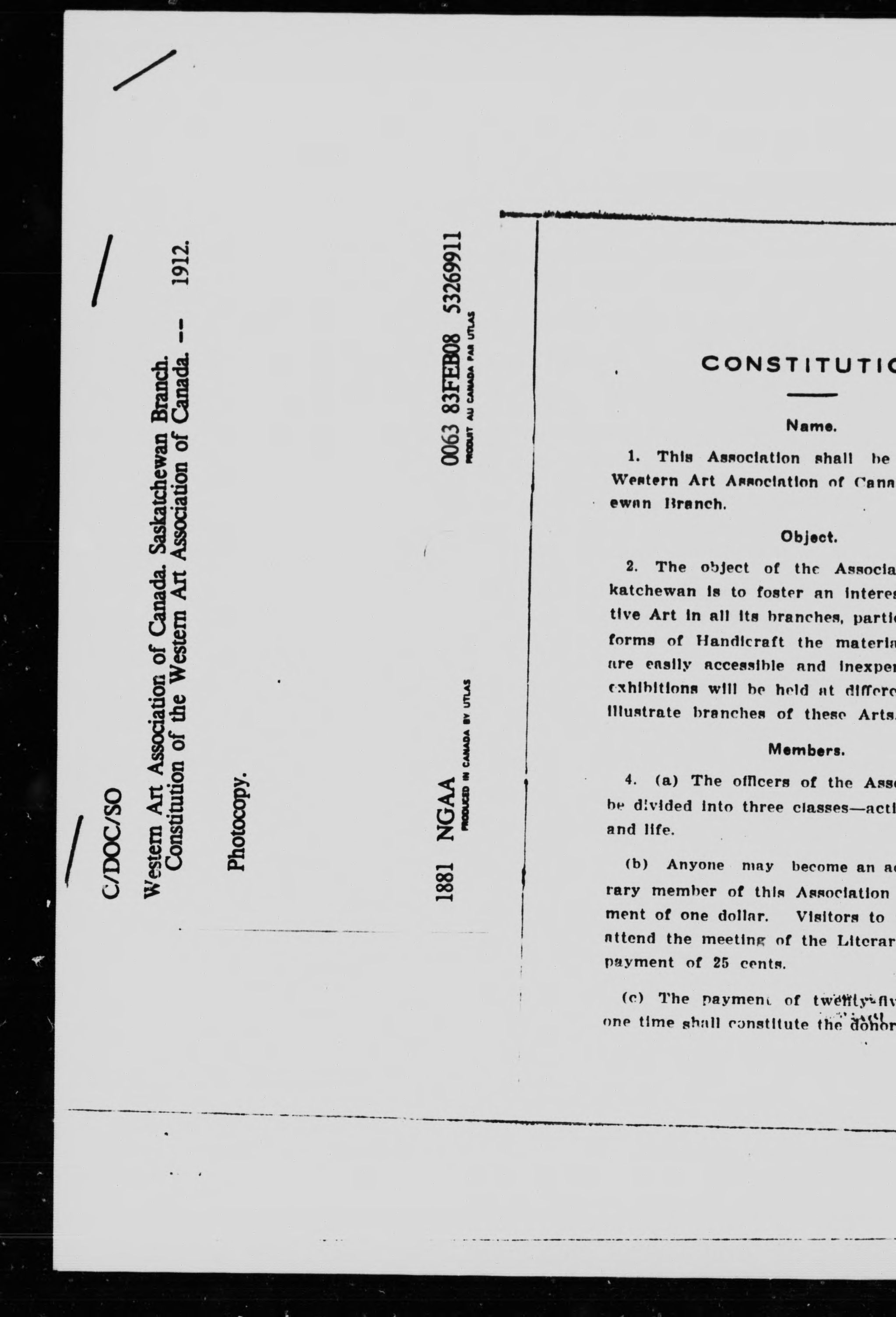 Western Art Association of Canada. Saskatchewan Branch -- Constitution.