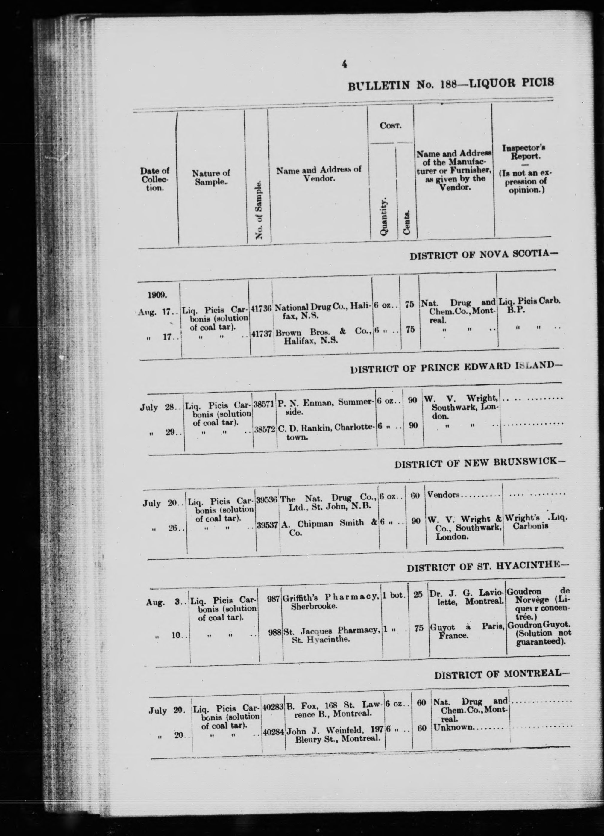 At head of title: Laboratory of the Inland Revenue Department. Ottawa, Canada.