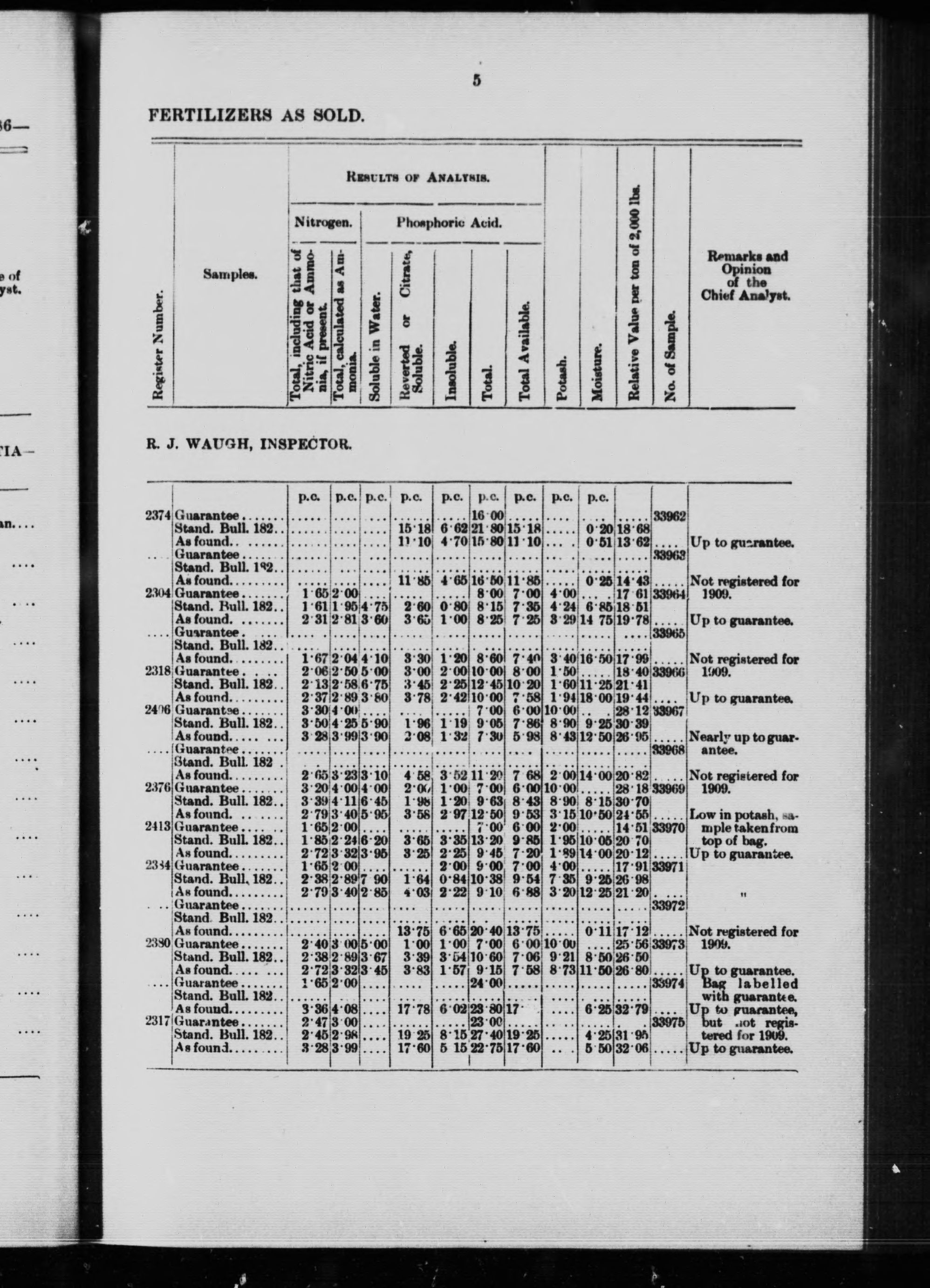 Fertilizers as sold, 1909 - Published