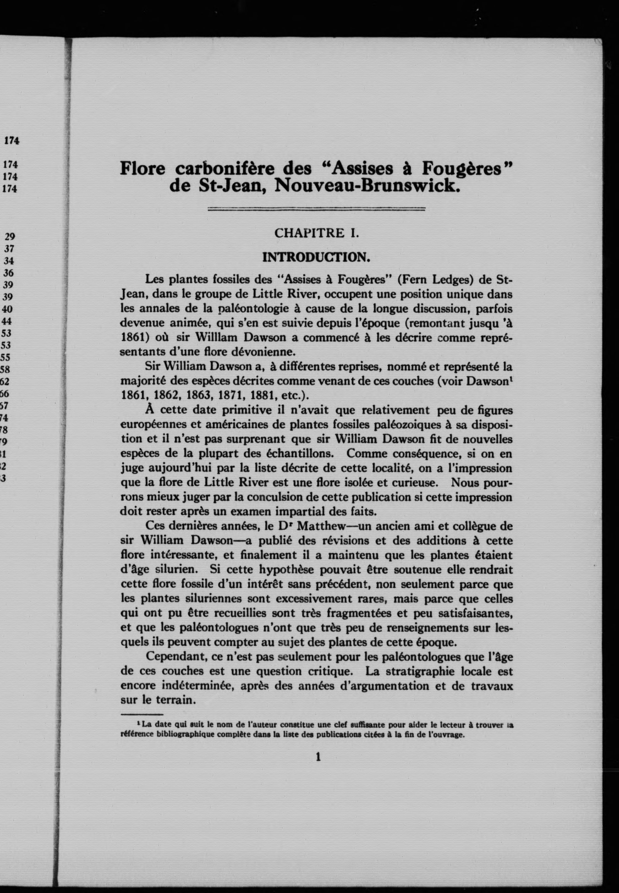Flore carbonifère des "Assises à fougères" de Saint-Jean, Nouveau Brunswick