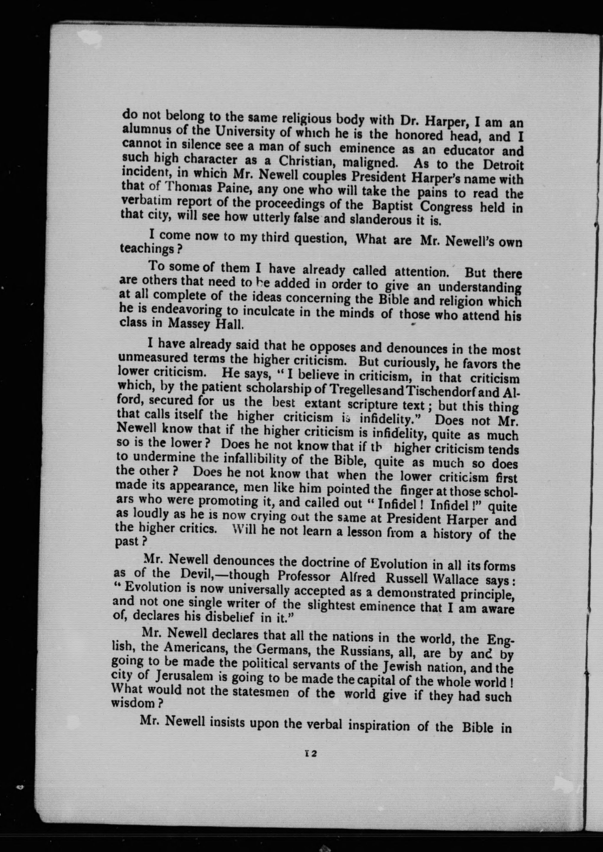 A reply to Mr. Newell's Massey Hall attack upon the higher criticism :