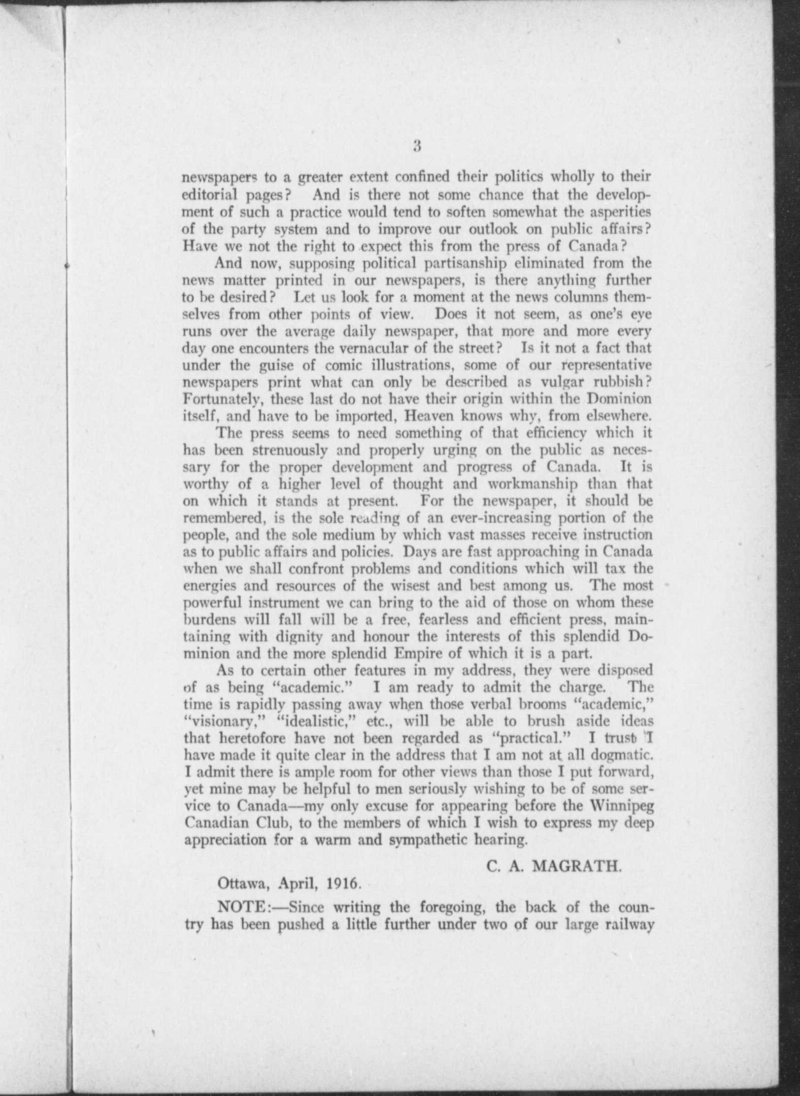 Problems and suggestions : address before the Canadian Club, Winnipeg, 4th February, 1916