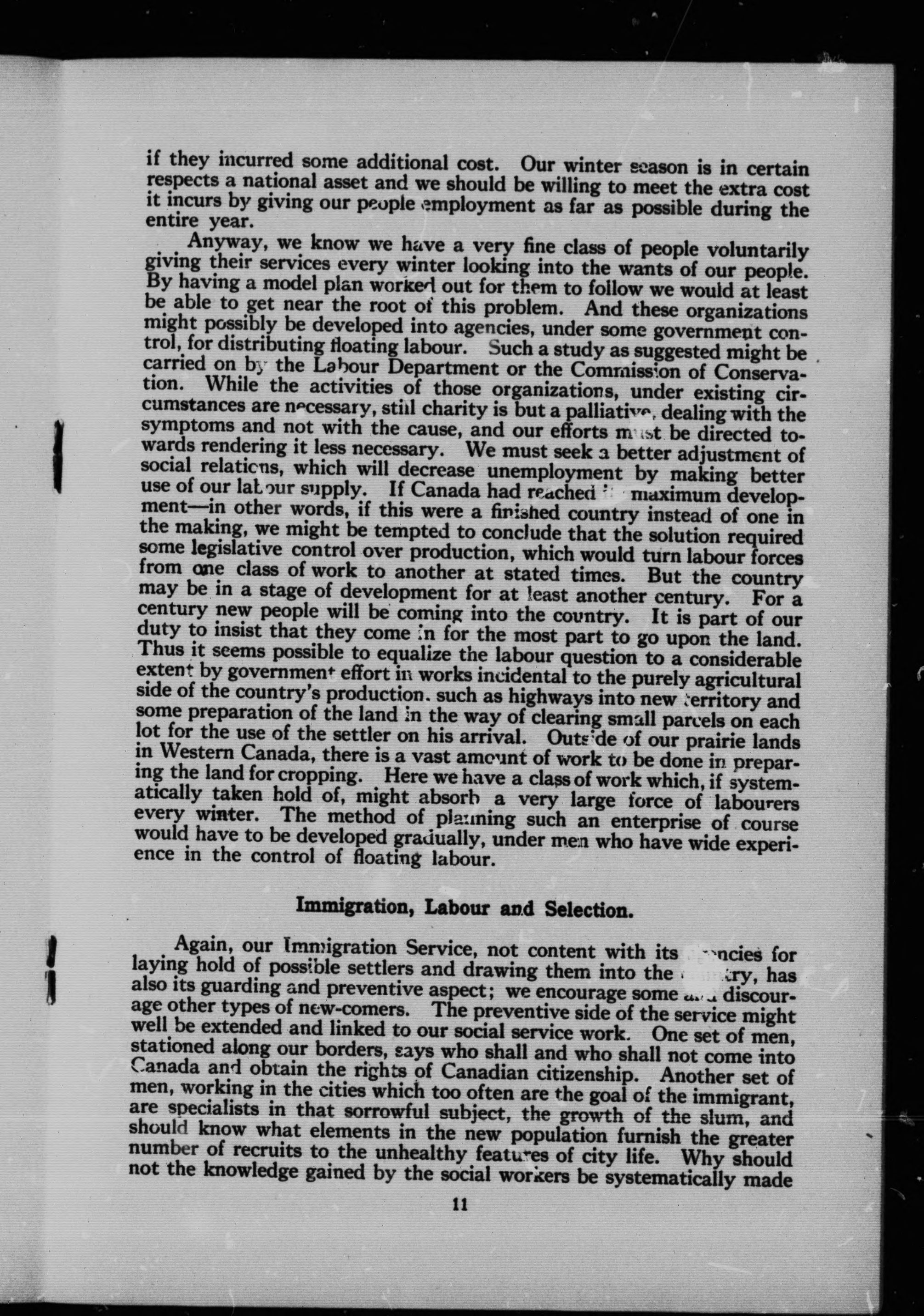 - A policy for Canada : one : make the people on the land more effective than they are at present ; two : establish a proper equilibrium between country and city ; three : obtain new farmers, who should reach the maximum point of efficiency in the minimum of time