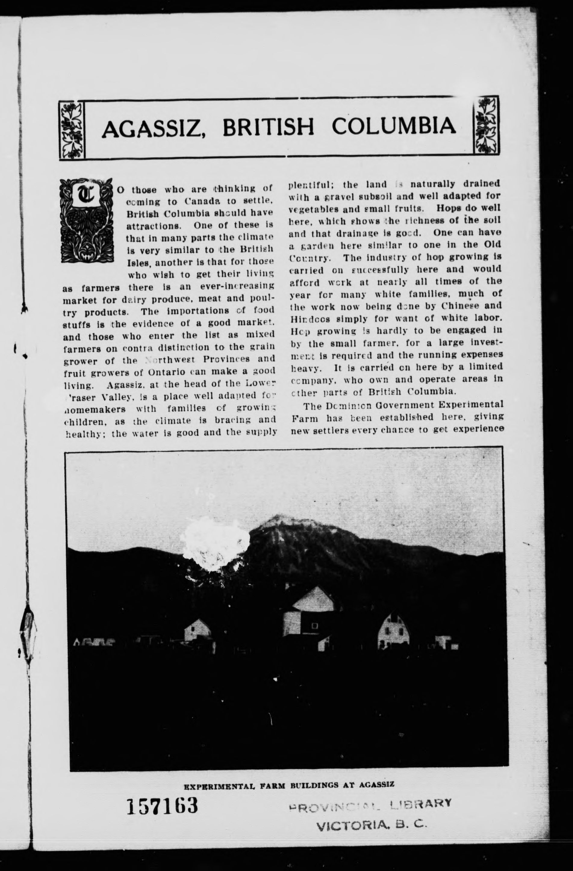 Agassiz, British Columbia : the home of the Dominion experimental farm. - Adresse bibliographique