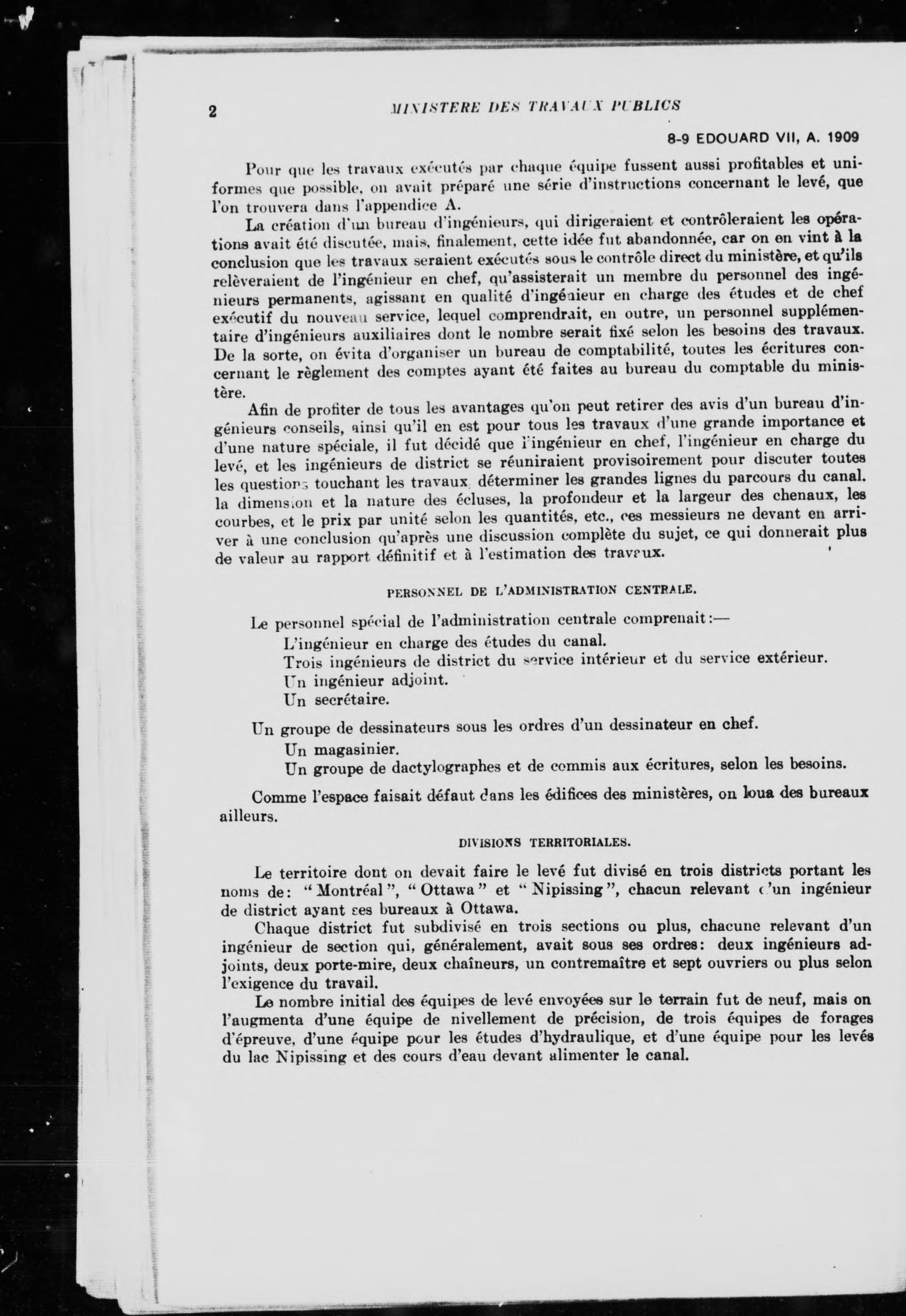 En tête du titre: 8-9 Edouard VII. Document parlementaire, no 19a. A. 1909. Ministère des travaux publics, Canada.