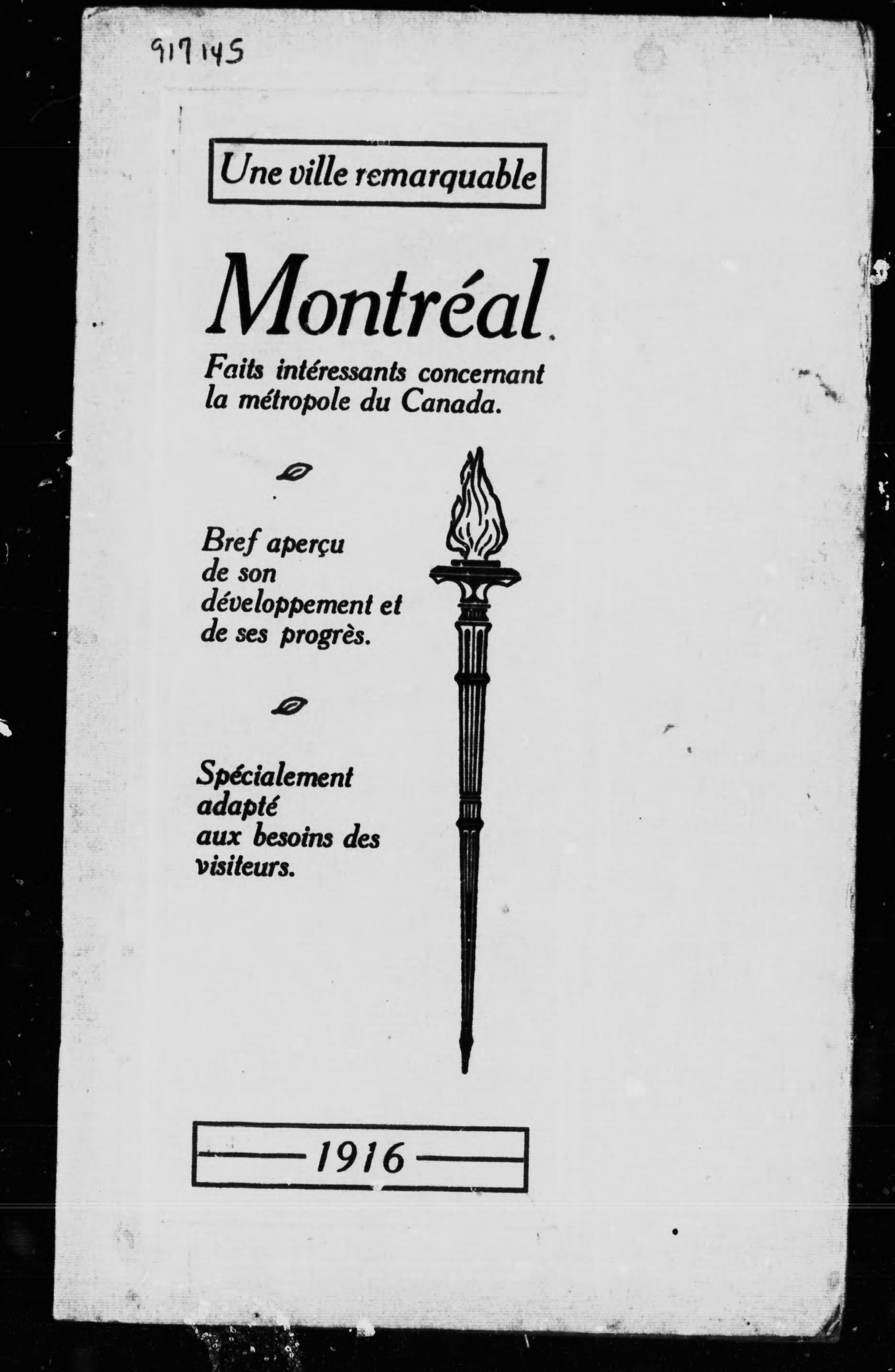 Une ville remarquable, Montréal : faits intéressants concernant la métropole du Canada : bref aperçu de son développement et de ses progrès : spécialemet adapté aux besoins des visiteurs, 1916.