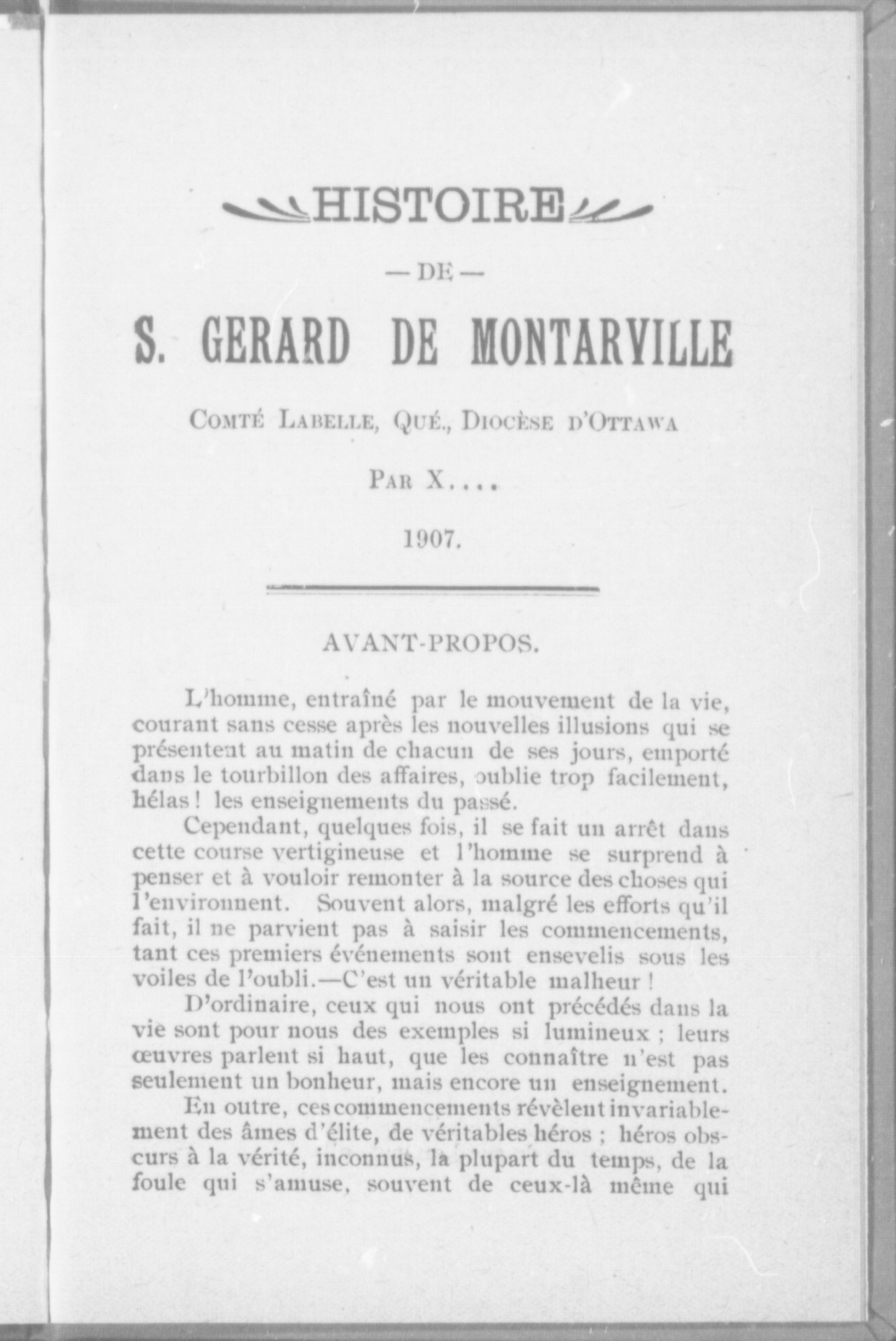 - Histoire de S. Gérard de Montarville, comté Labelle, Qué., diocèse d'Ottawa
