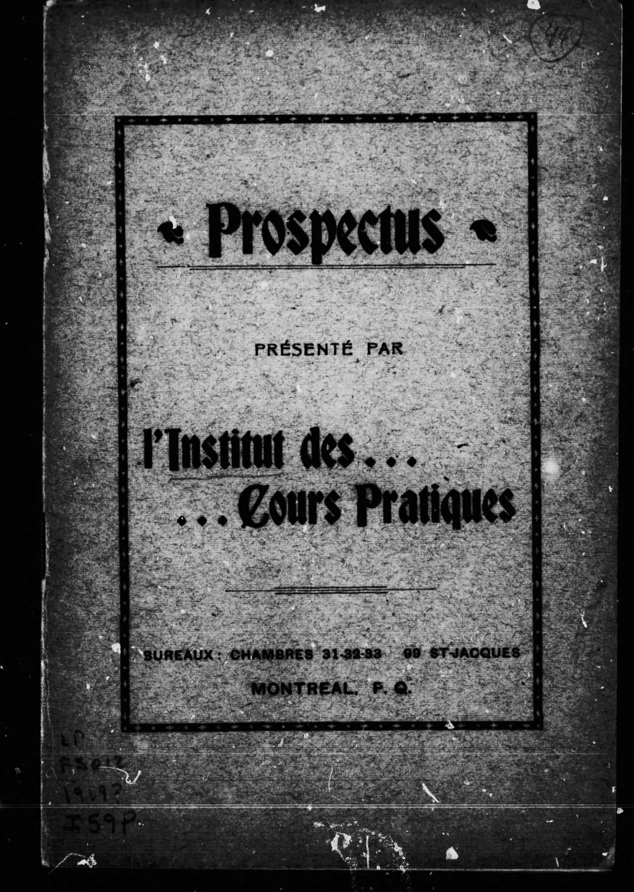 Prospectus présenté par l'Institut des Cours Pratiques. - Adresse bibliographique