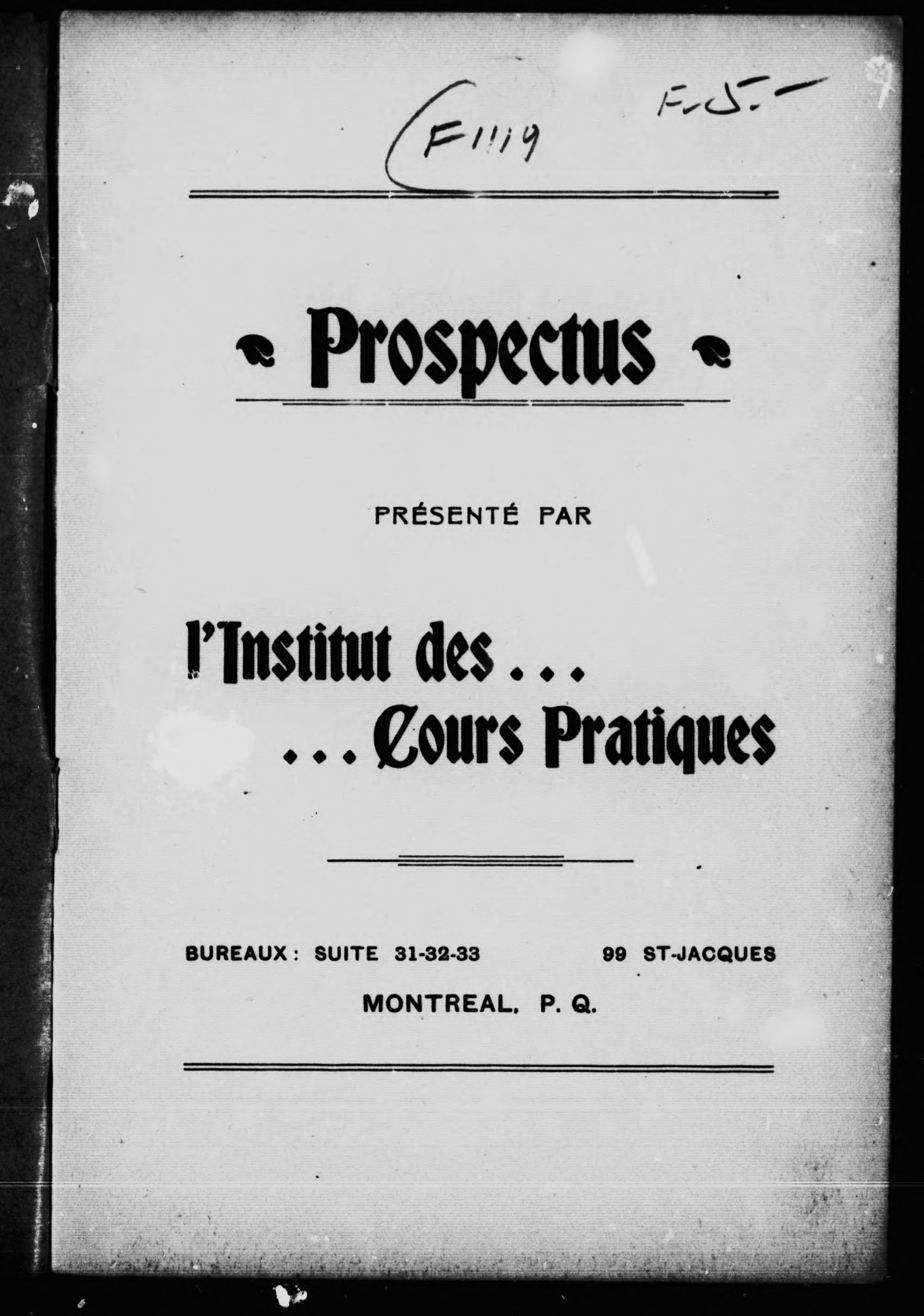Prospectus présenté par l'Institut des Cours Pratiques. - Adresse bibliographique