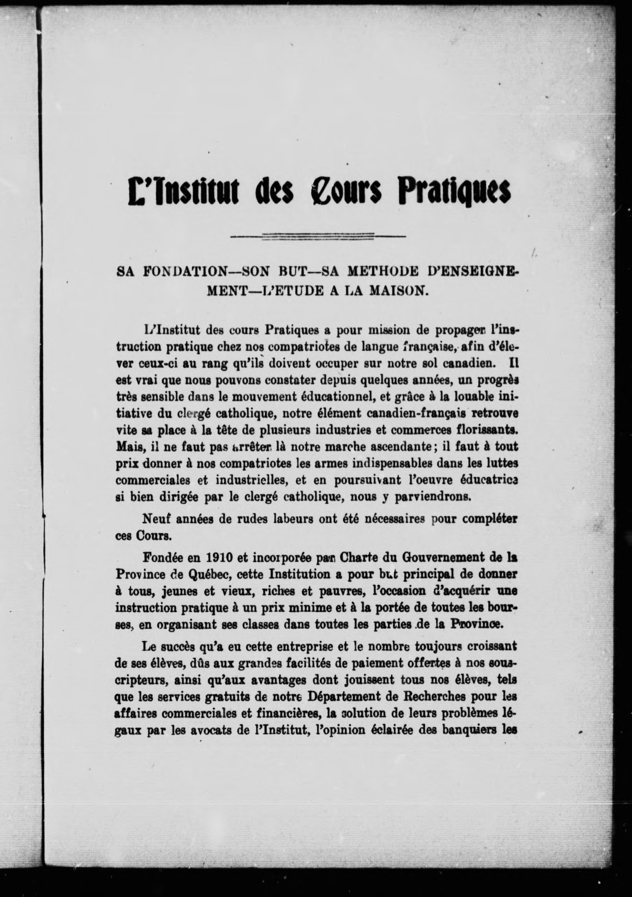 Prospectus présenté par l'Institut des Cours Pratiques. - Adresse bibliographique