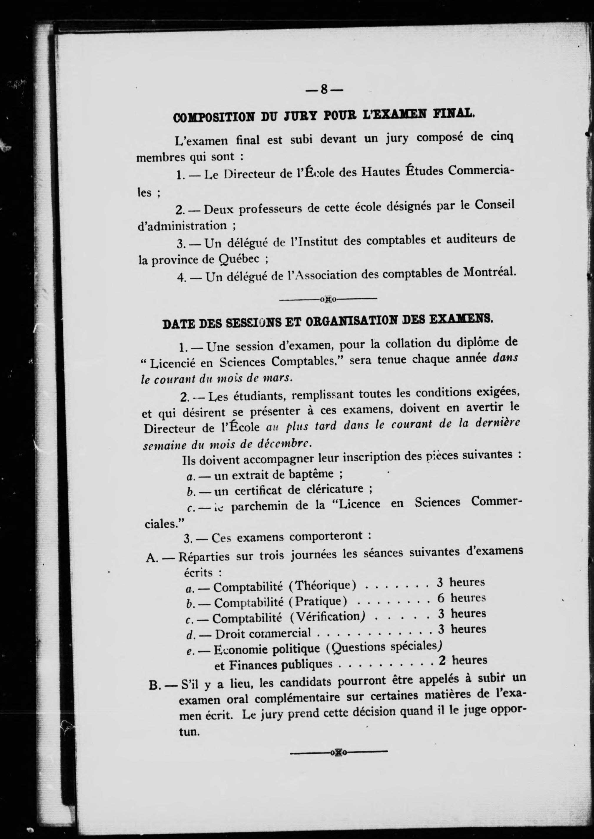 Diplôme d'expert comptable : privilège de la Loi 8, Georges V, Chap. 44 : examen final : dispositions réglementaires et questions posées à la première session (1918) - Adresse bibliographique