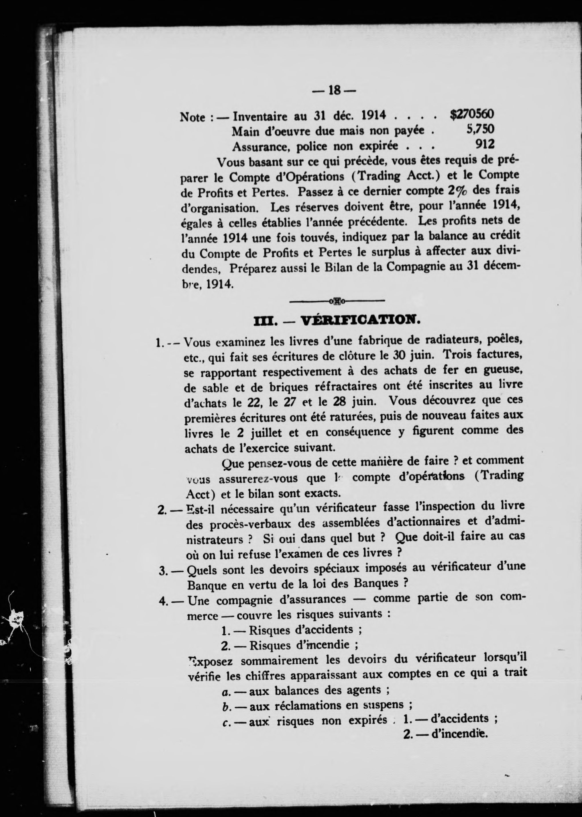 Diplôme d'expert comptable : privilège de la Loi 8, Georges V, Chap. 44 : examen final : dispositions réglementaires et questions posées à la première session (1918) - Adresse bibliographique