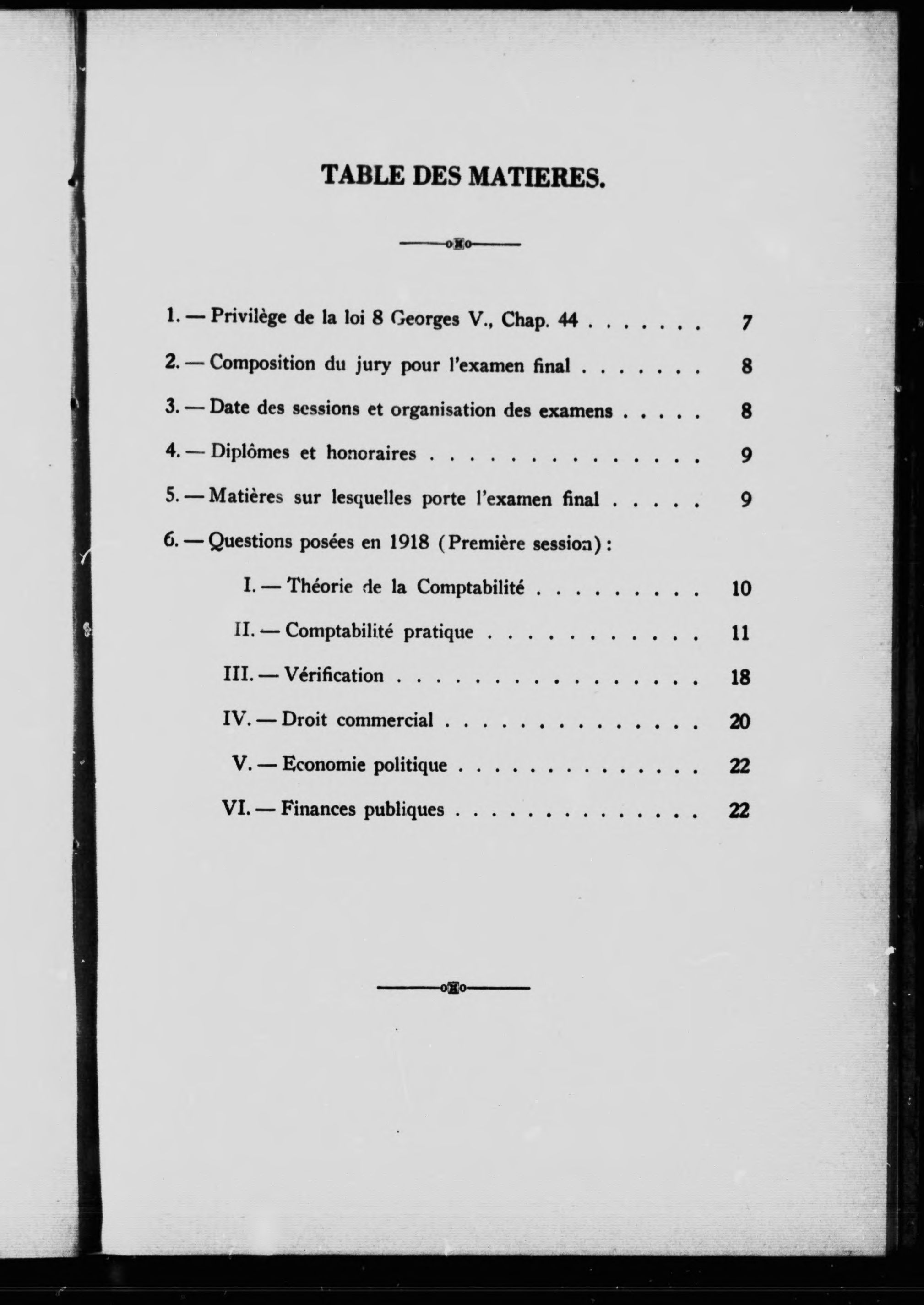 Diplôme d'expert comptable : privilège de la Loi 8, Georges V, Chap. 44 : examen final : dispositions réglementaires et questions posées à la première session (1918) - Adresse bibliographique