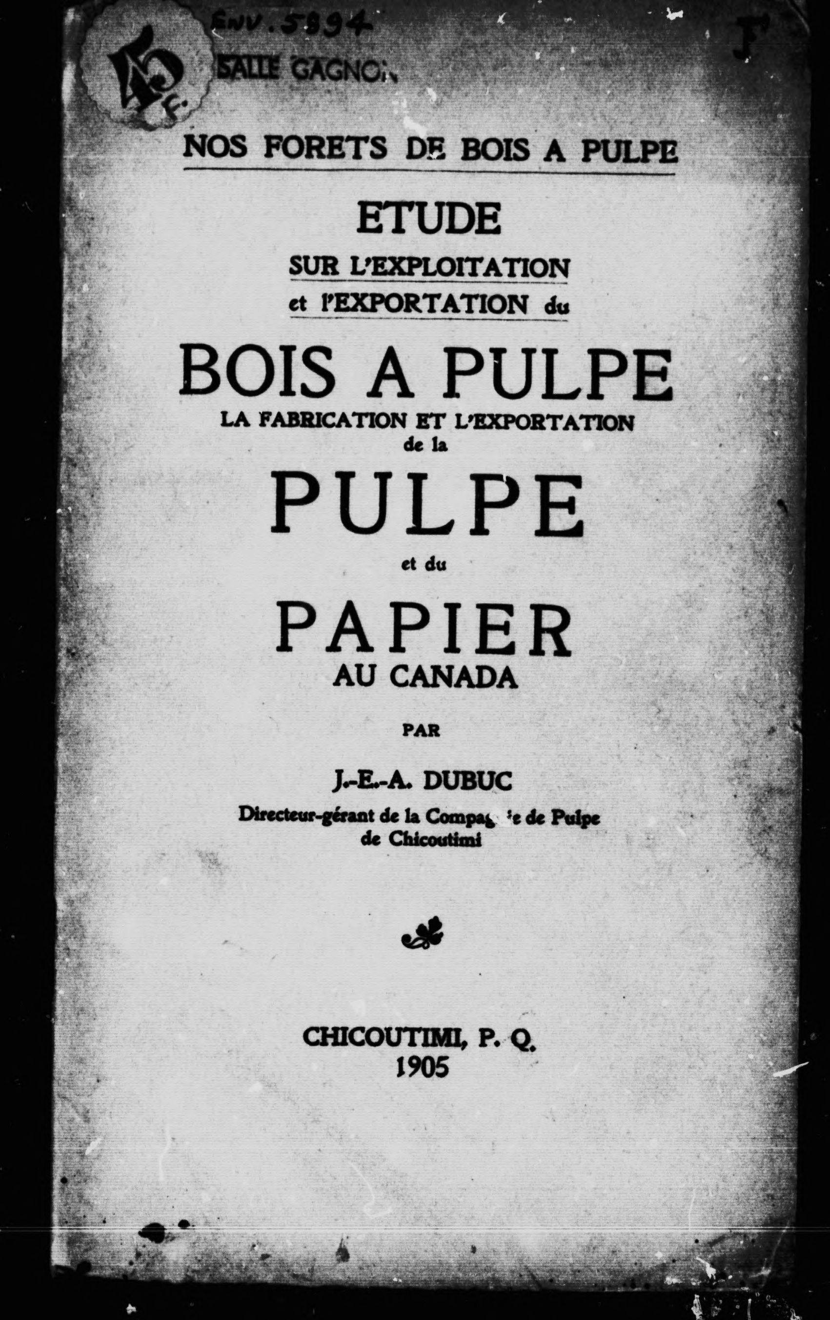 - Chicoutimi, [Québec : publisher not identified], 1905.