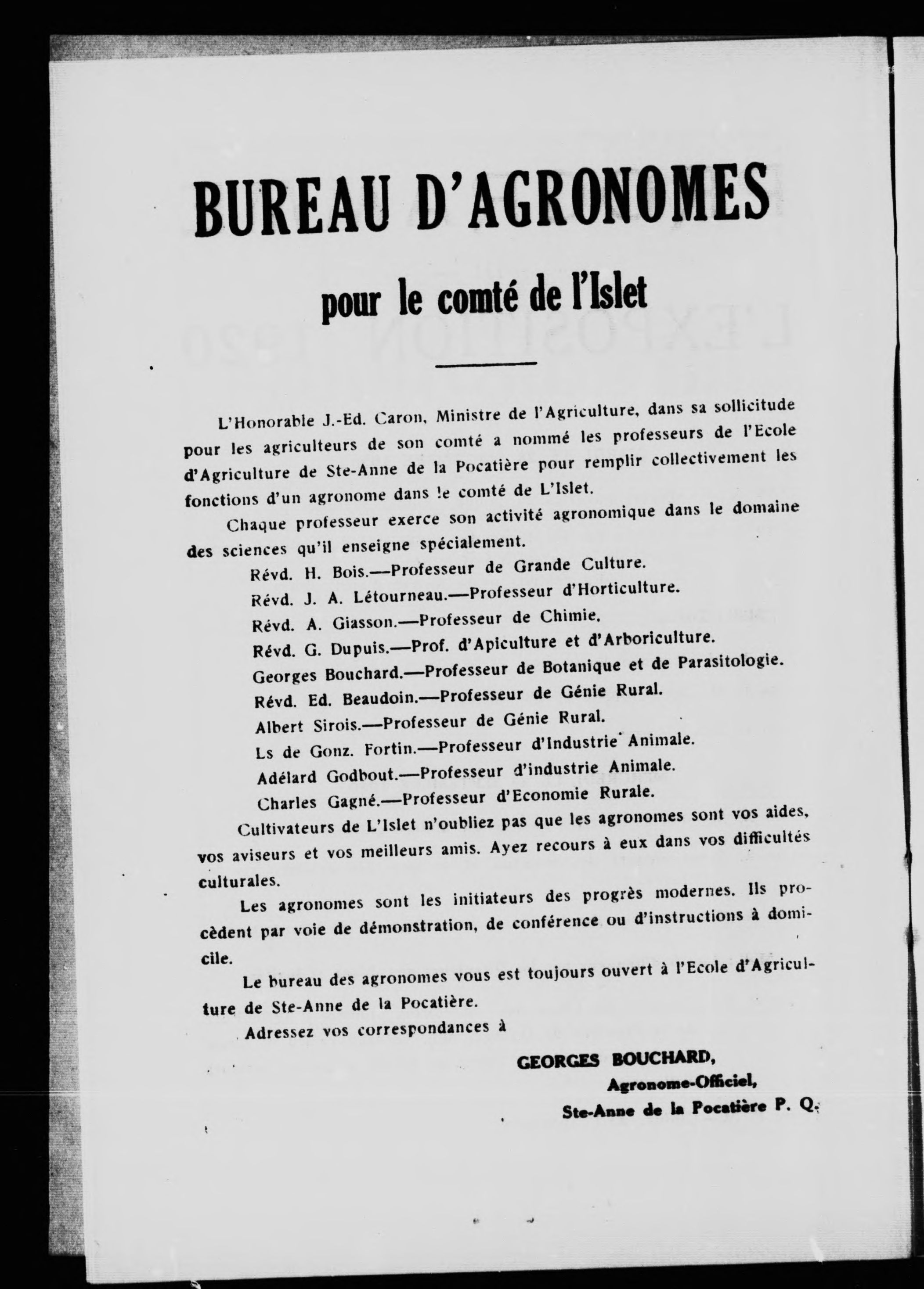"La Société d'agriculture de comté de l'Islet : exposition 1920."--p. [1]