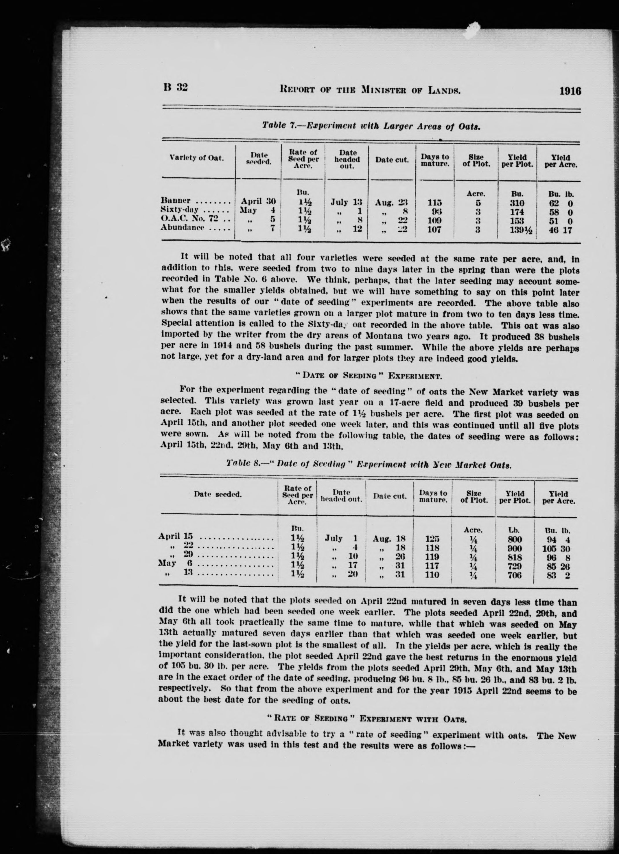 Running title: Report of the Minister of Lands : dry-farming investigations.