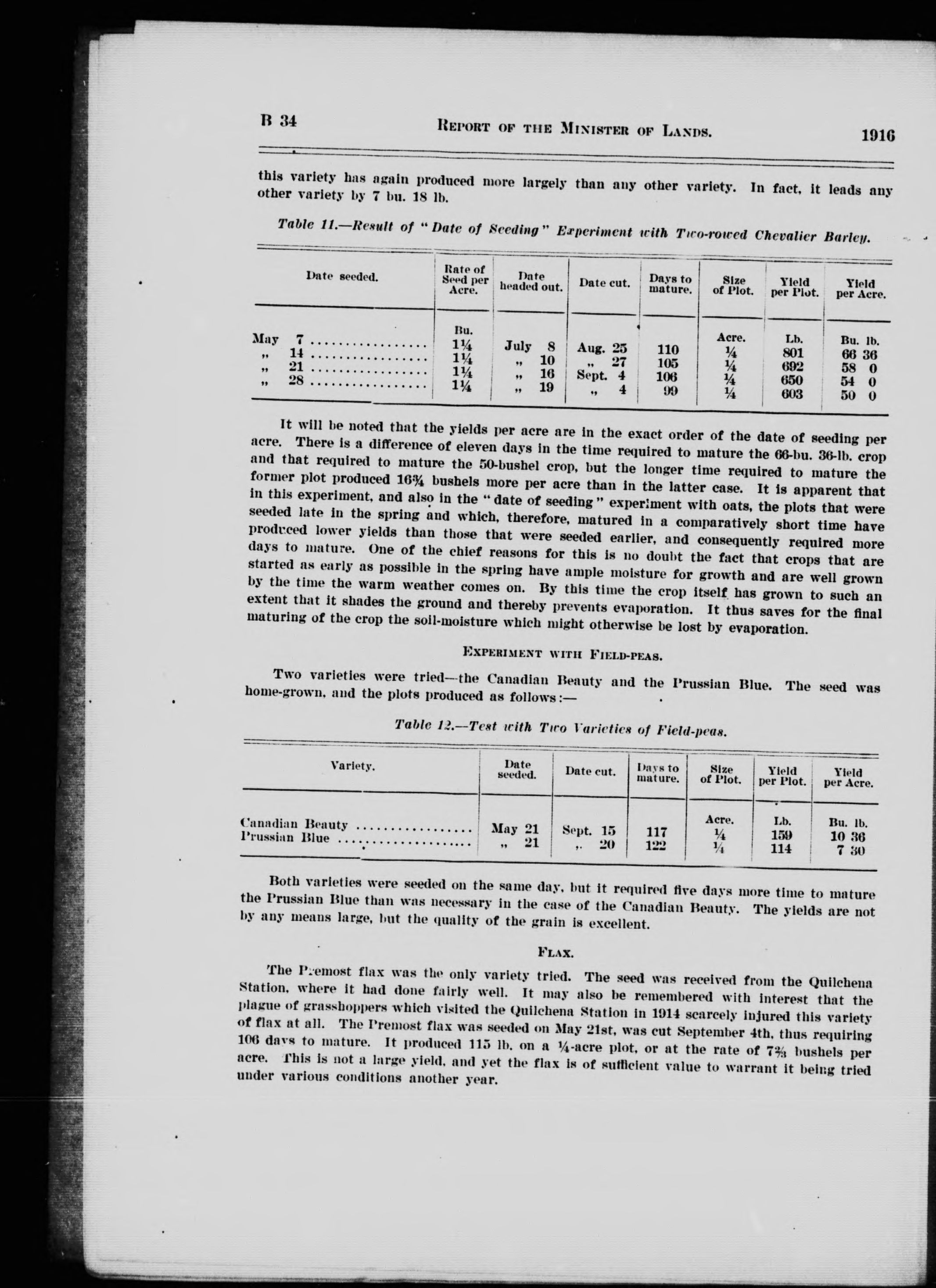 Running title: Report of the Minister of Lands : dry-farming investigations.