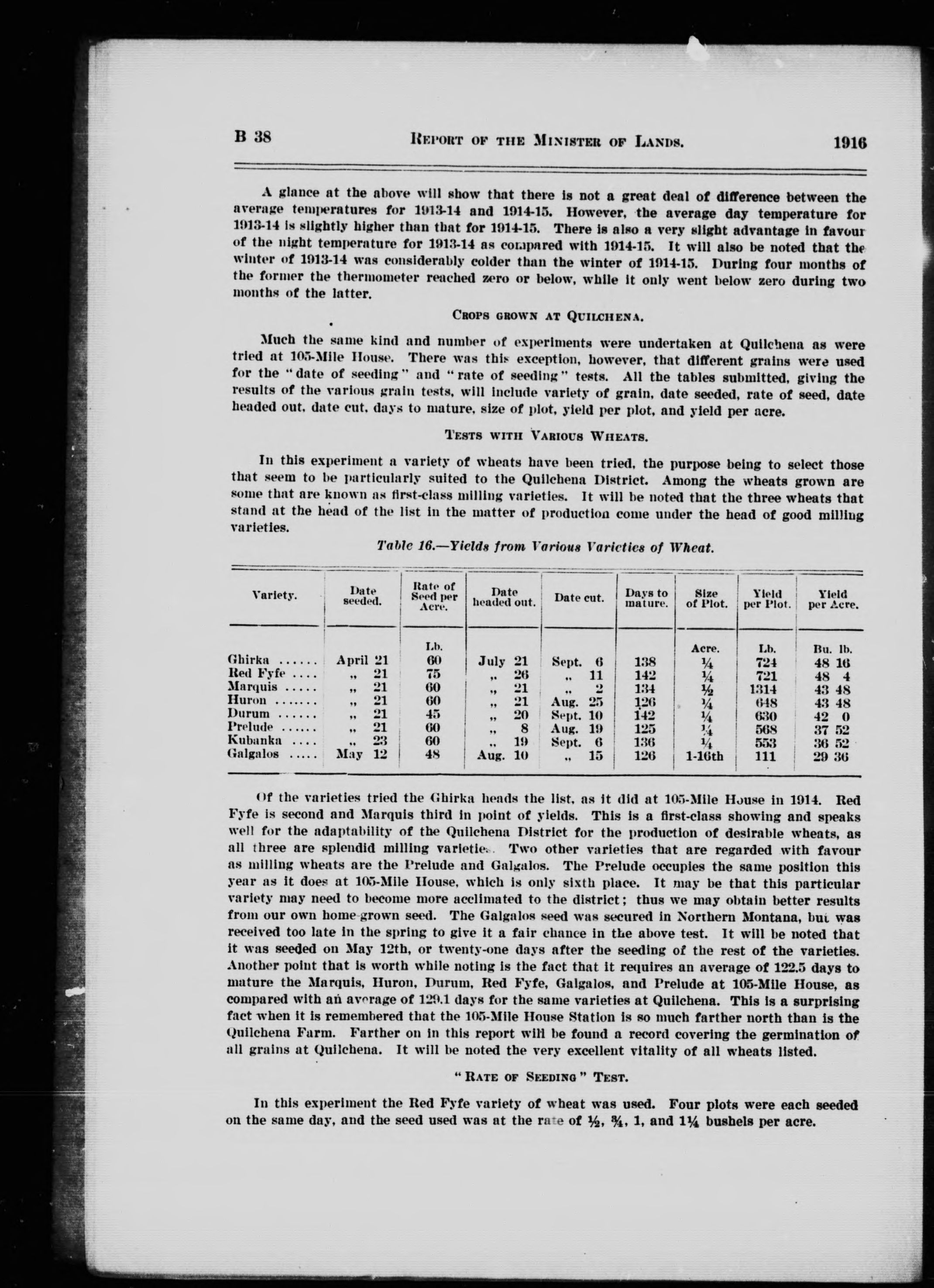 Running title: Report of the Minister of Lands : dry-farming investigations.