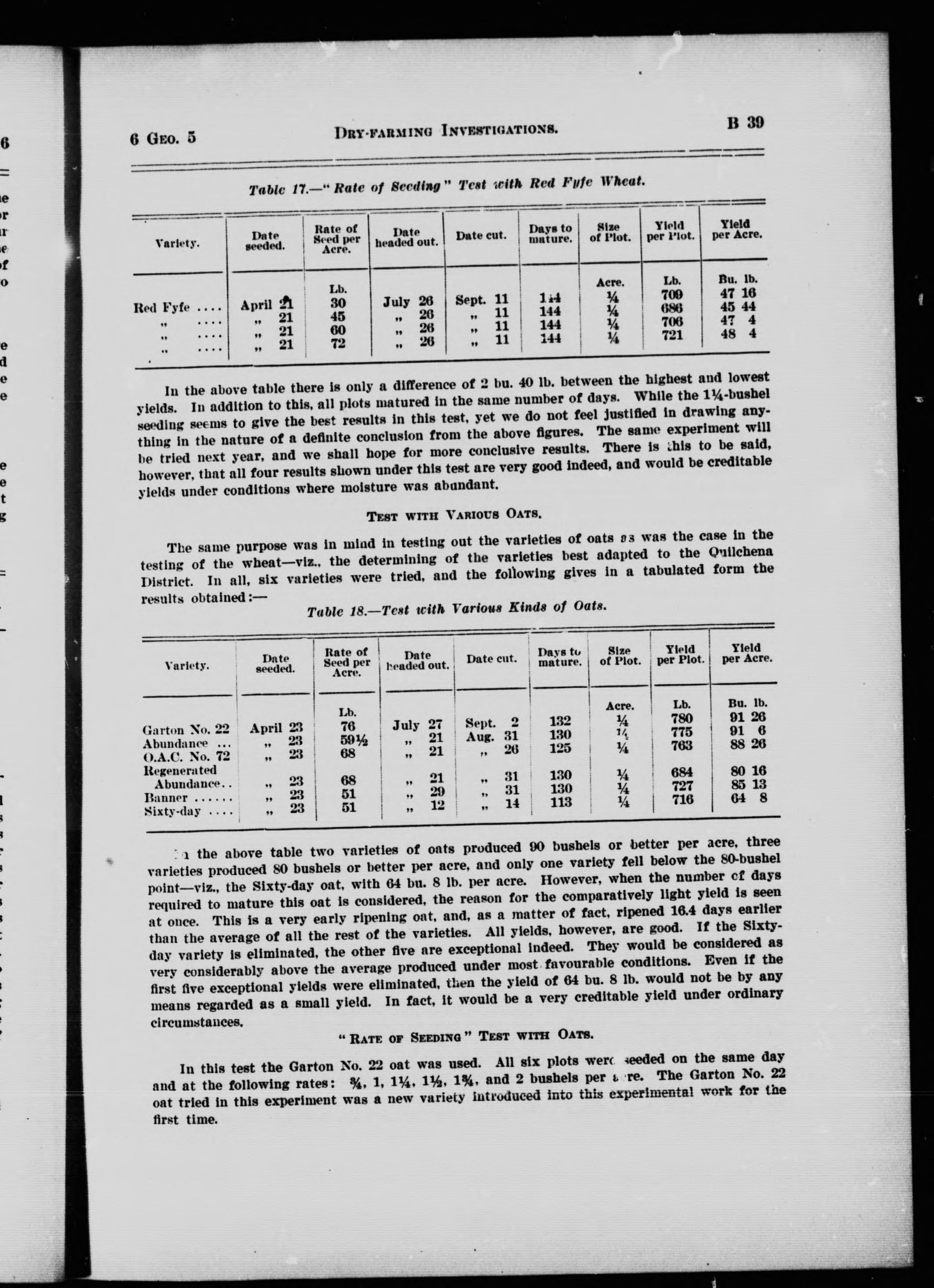 Running title: Report of the Minister of Lands : dry-farming investigations.