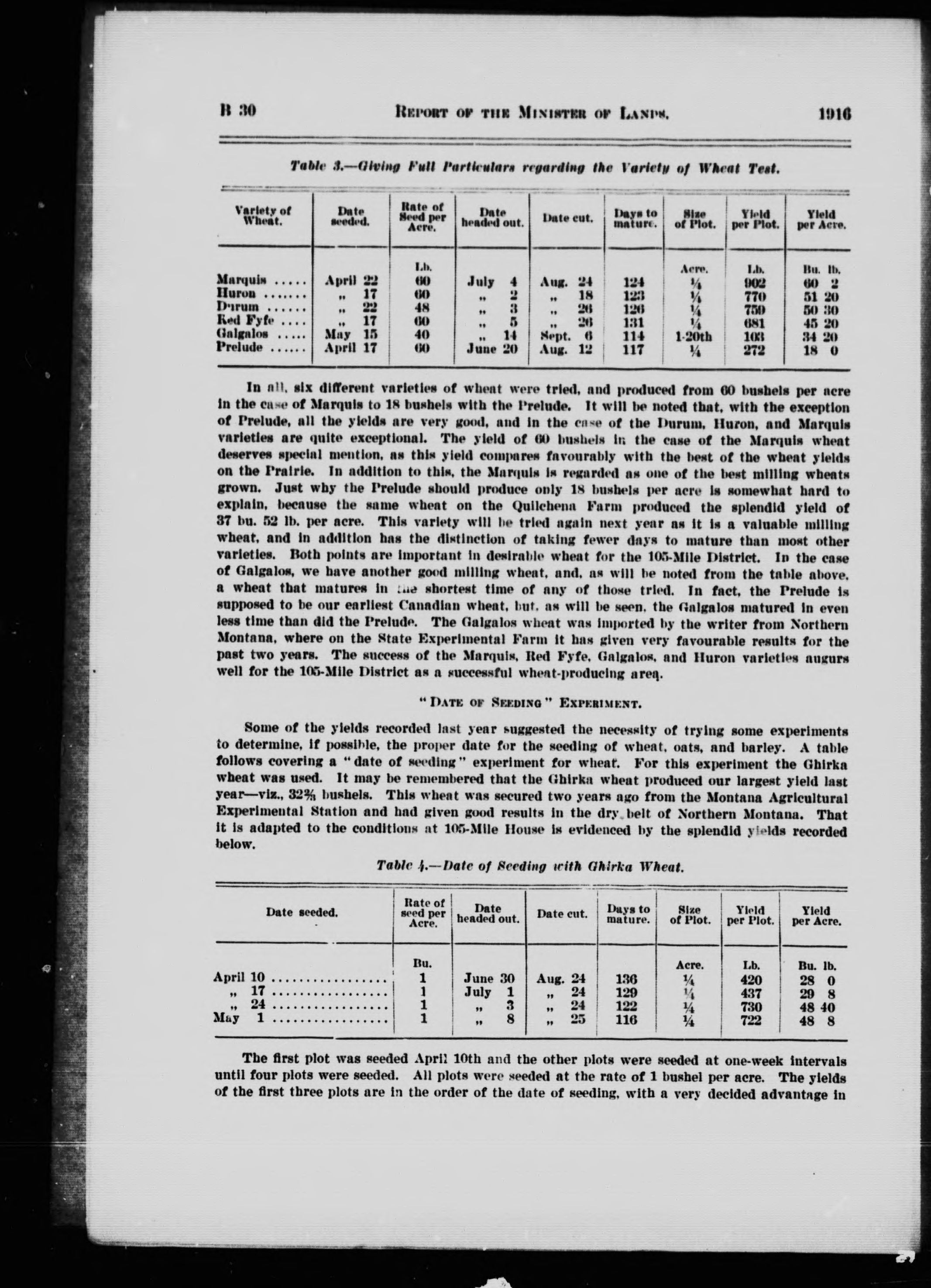 Running title: Report of the Minister of Lands : dry-farming investigations.