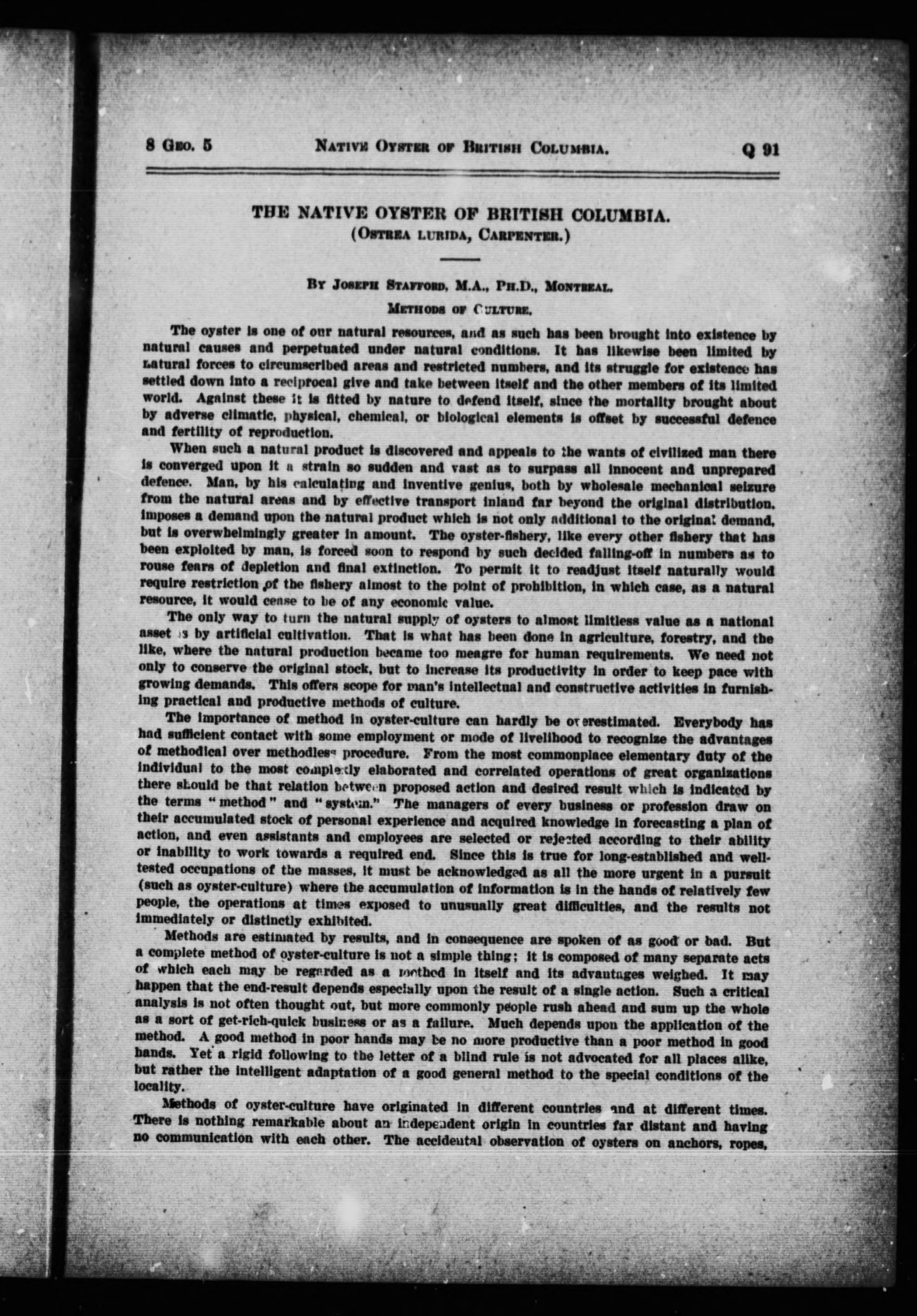 - The native oyster of British Columbia (Ostrea lurida, Carpenter)