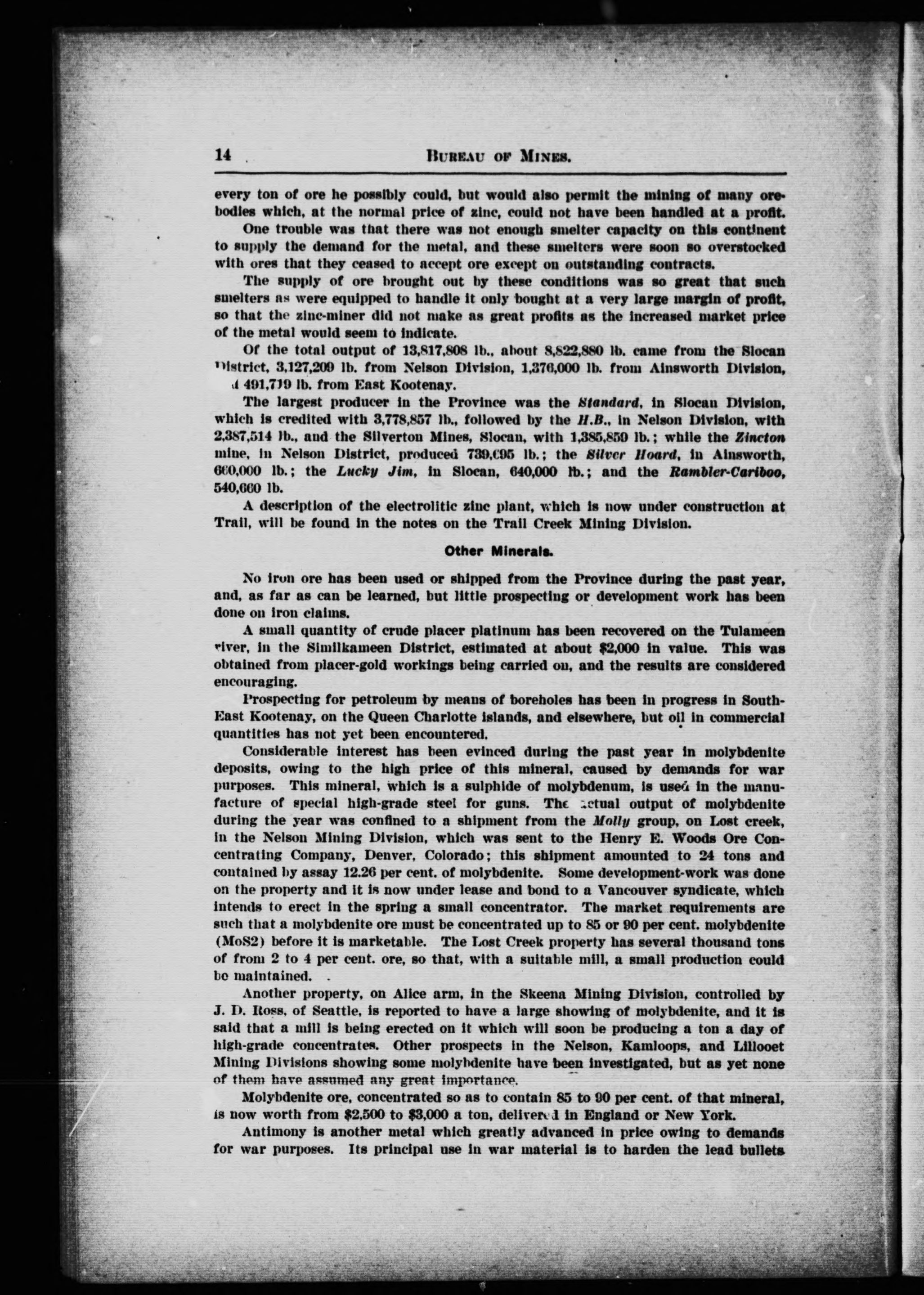 Original issued in series: Bulletin / British Columbia. Bureau of Mines ; numbers 1, 1916.