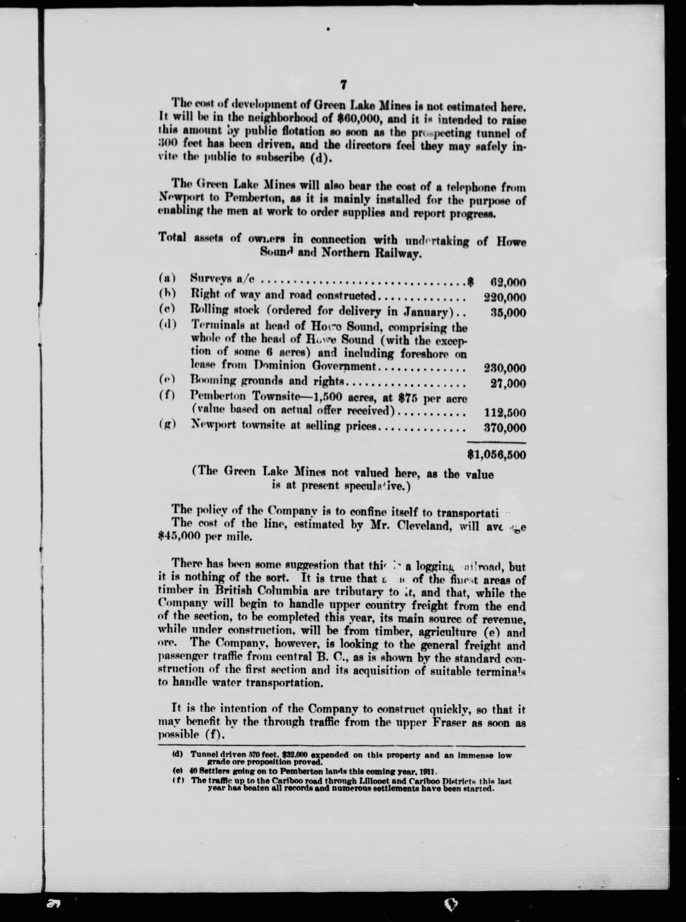 Howe Sound & Northern Ry : memorandum, January, 1911.