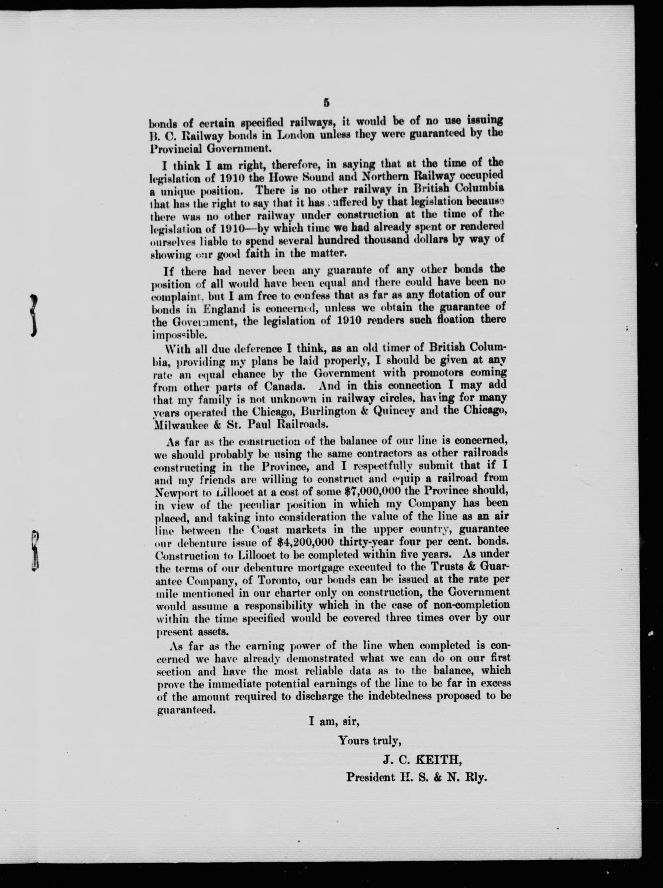 Howe Sound & Northern Ry : memorandum, January, 1911.