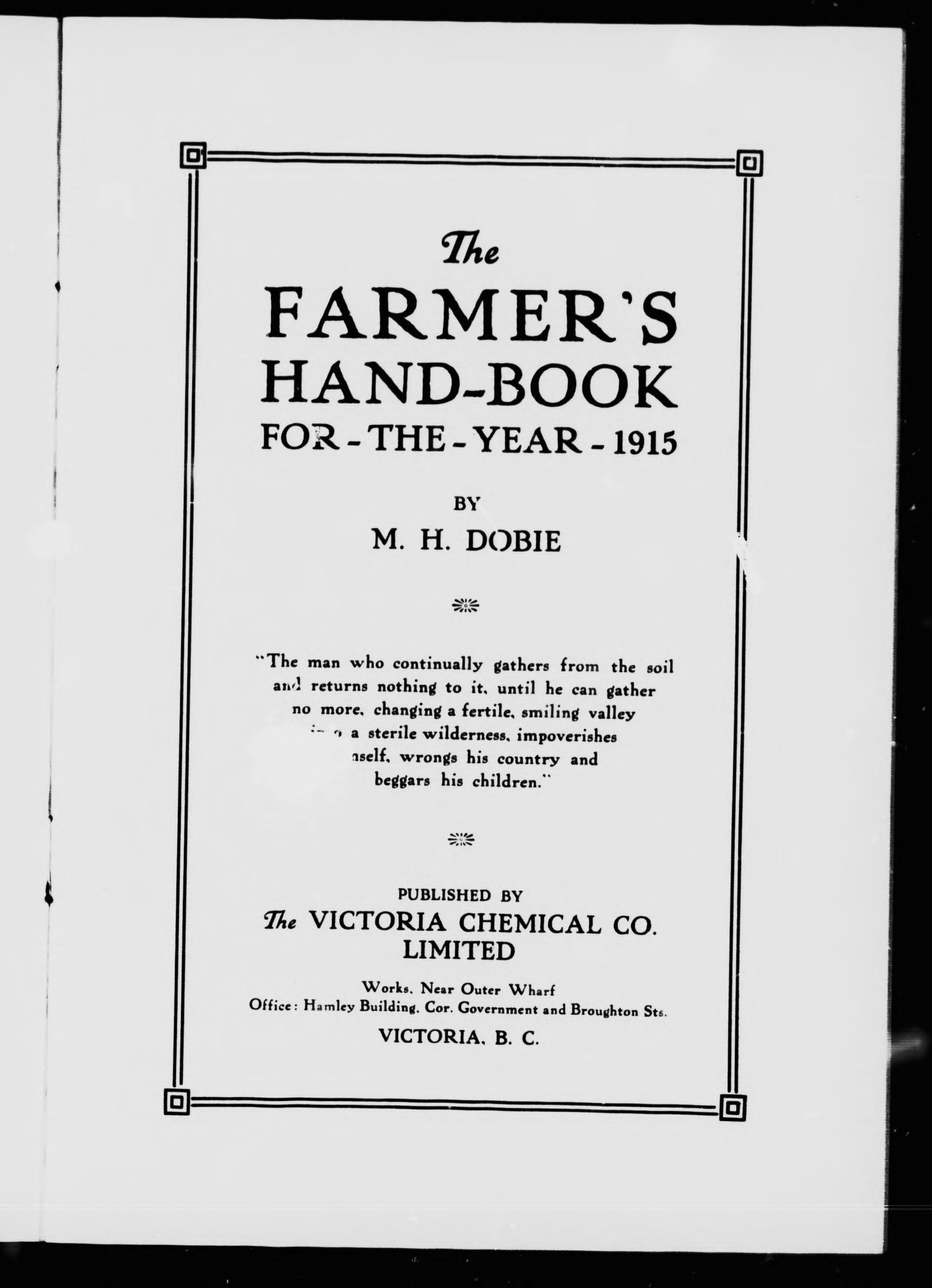 Victoria, B.C. : Victoria Chemical Company, [1915?]; 37 images, 33 avec recherche en texte intégral