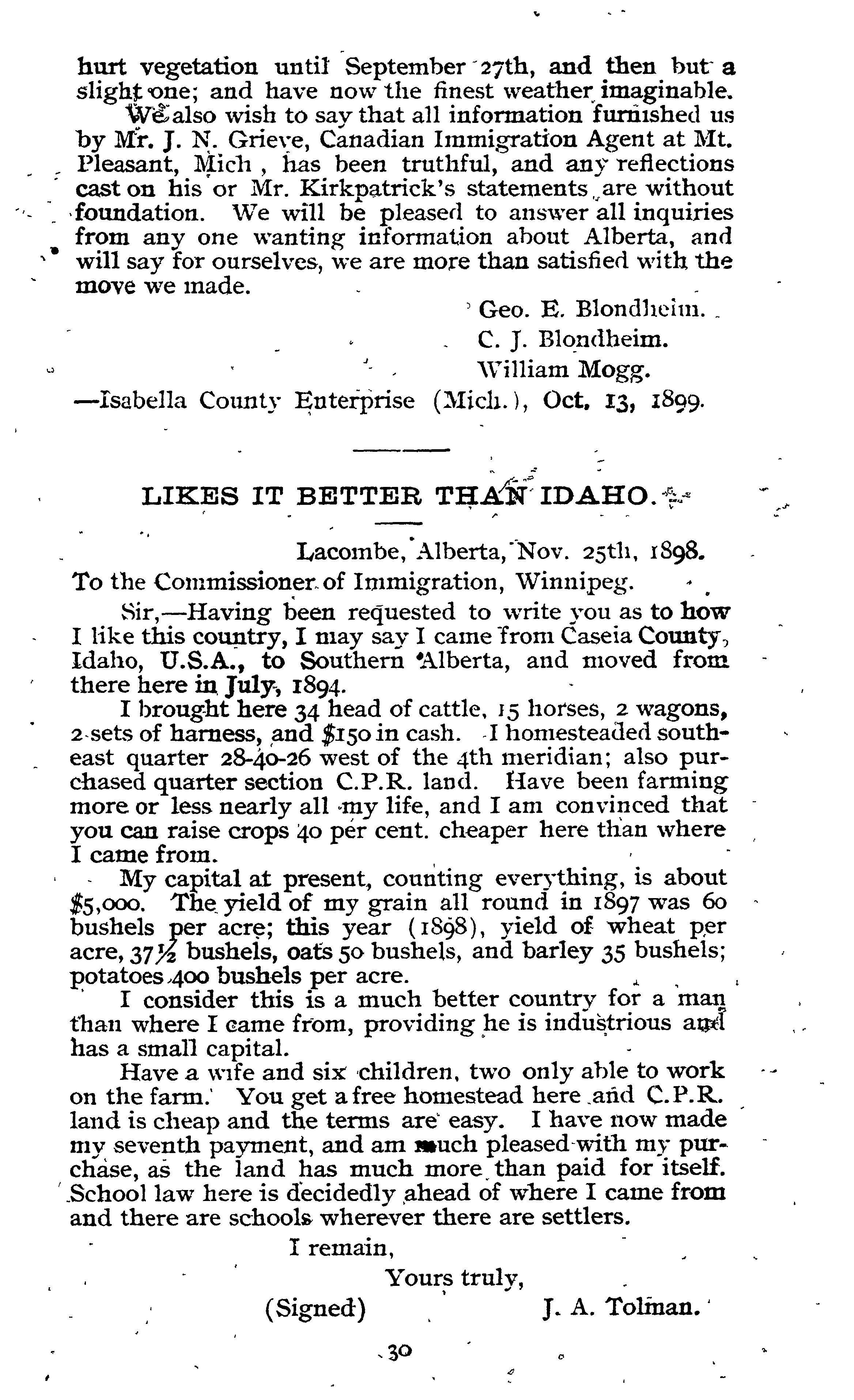 "Printed by order of Hon. Clifford Sifton, Minister of the Interior."