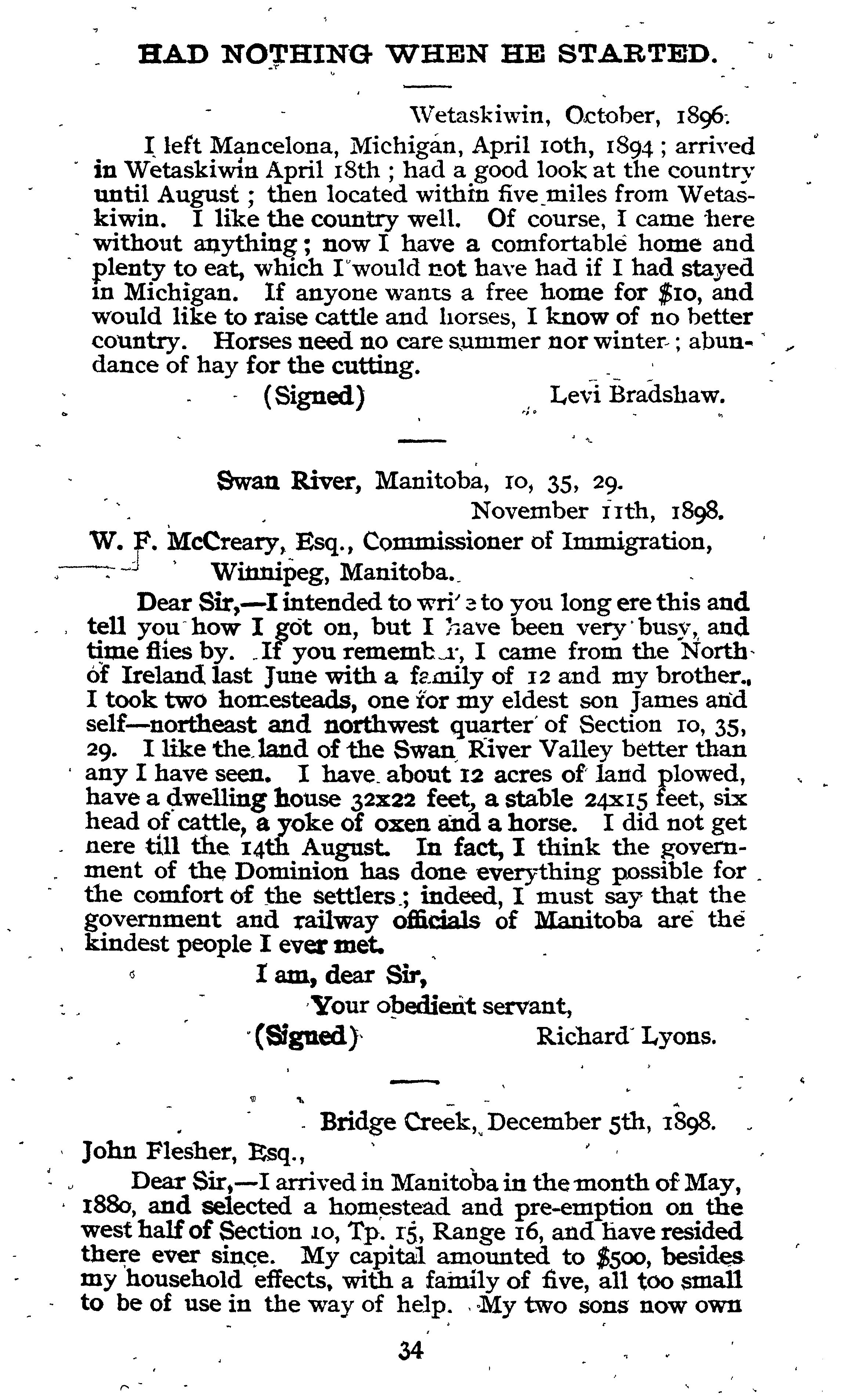 "Printed by order of Hon. Clifford Sifton, Minister of the Interior."