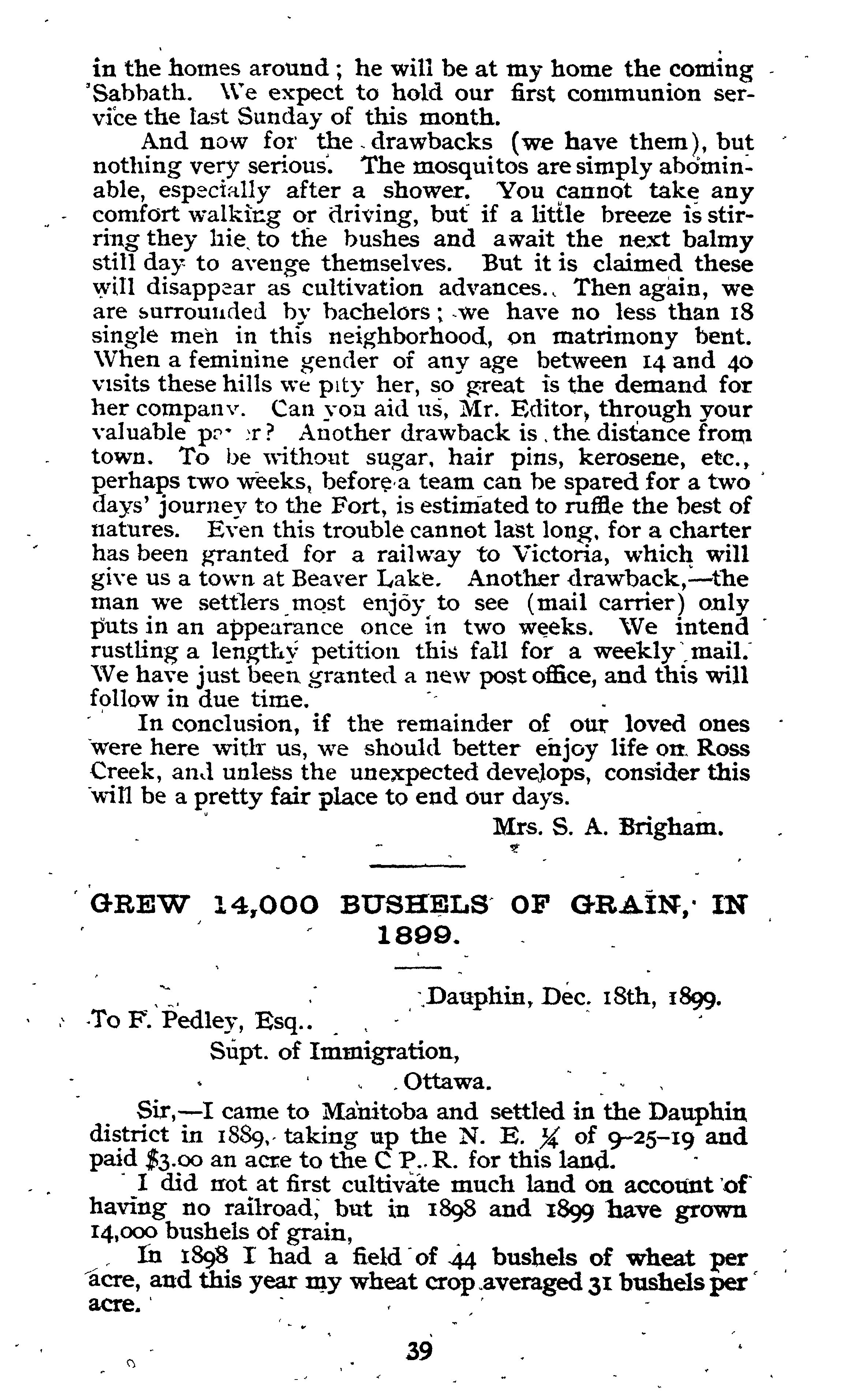 - Prosperity follows settlement : settlers' experiences in western Canada.