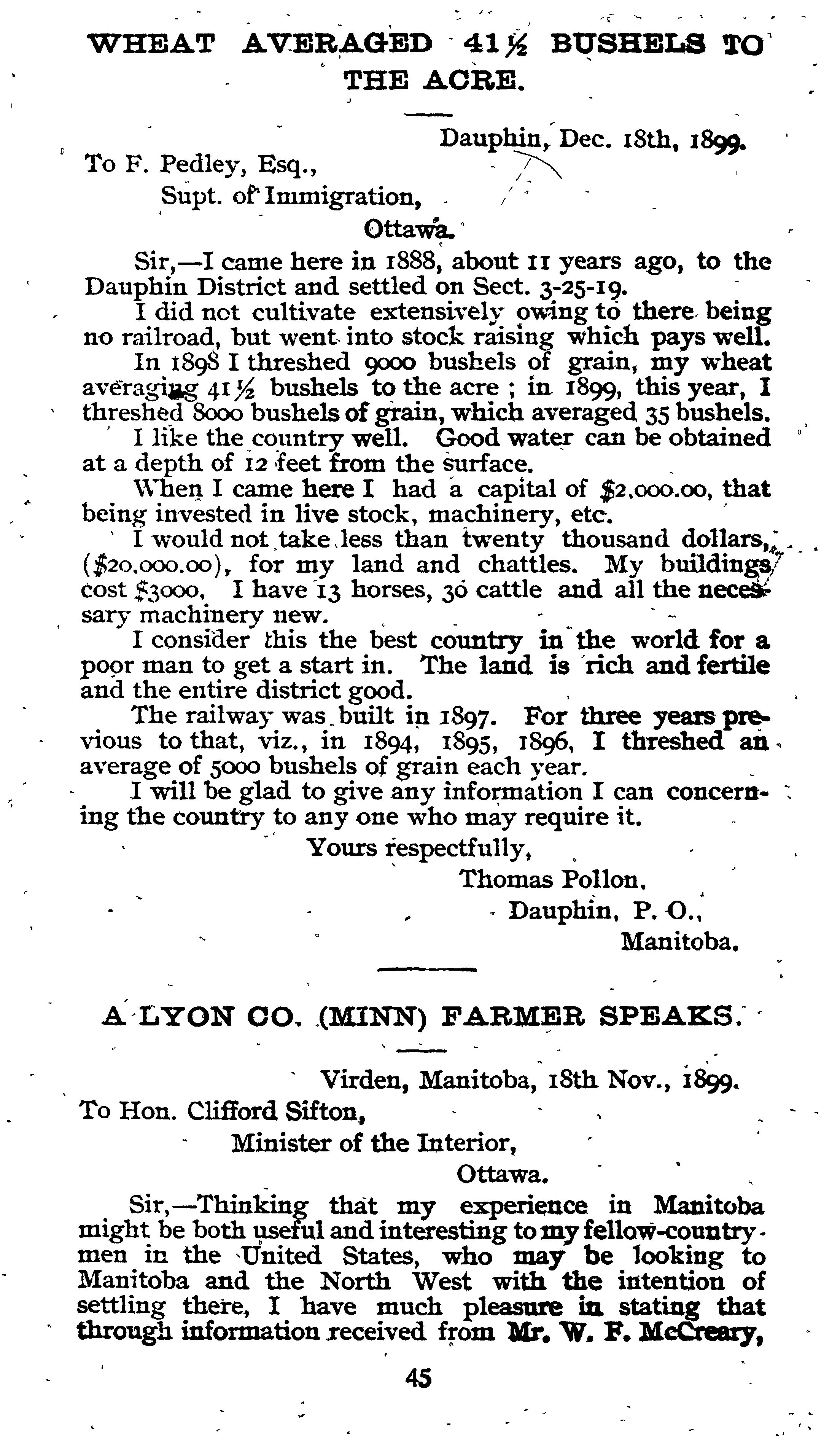 "Printed by order of Hon. Clifford Sifton, Minister of the Interior."