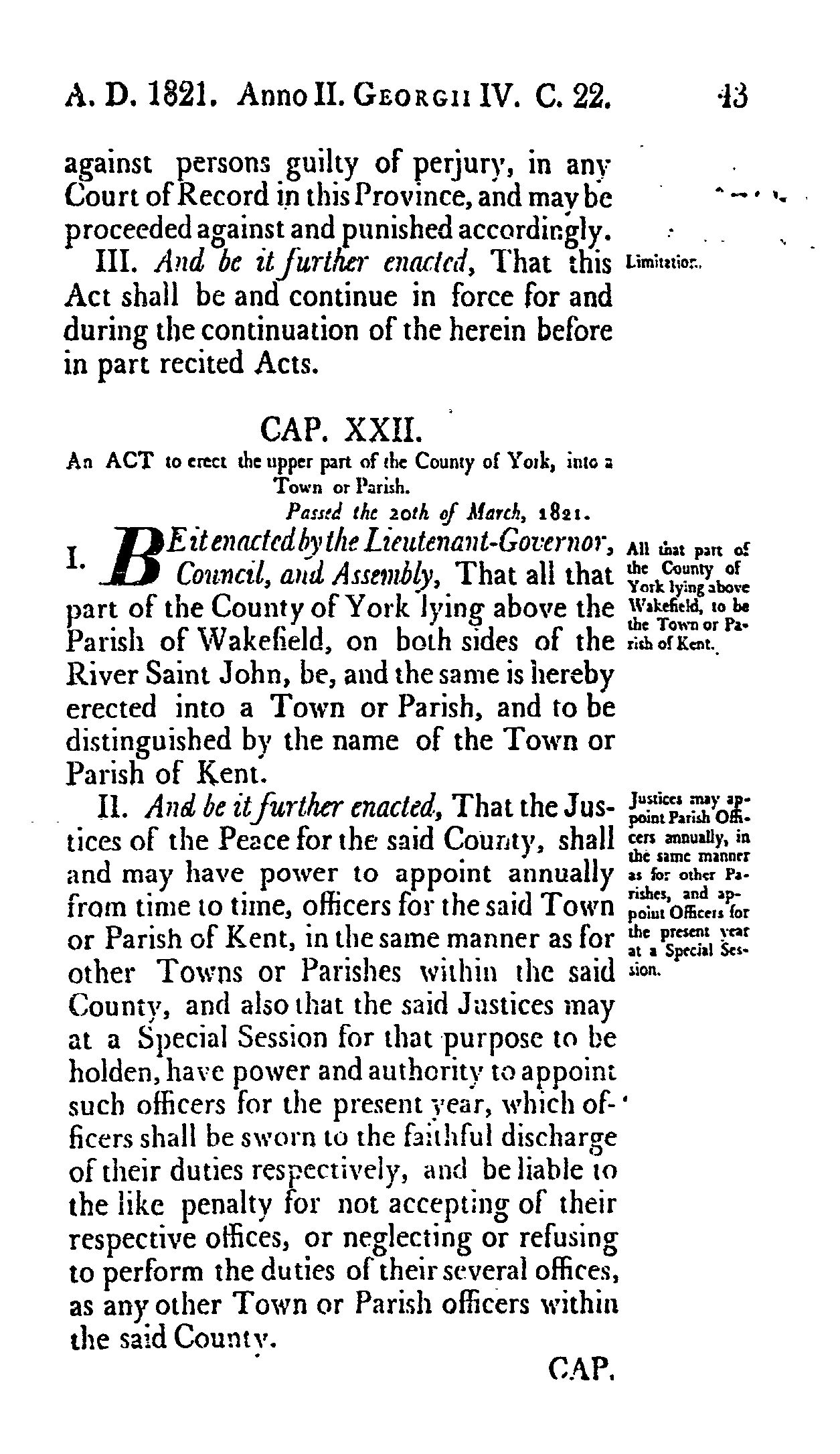 - Acts of the General Assembly of His Majesty's province of New-Brunswick passed in the year 1821 : 1821