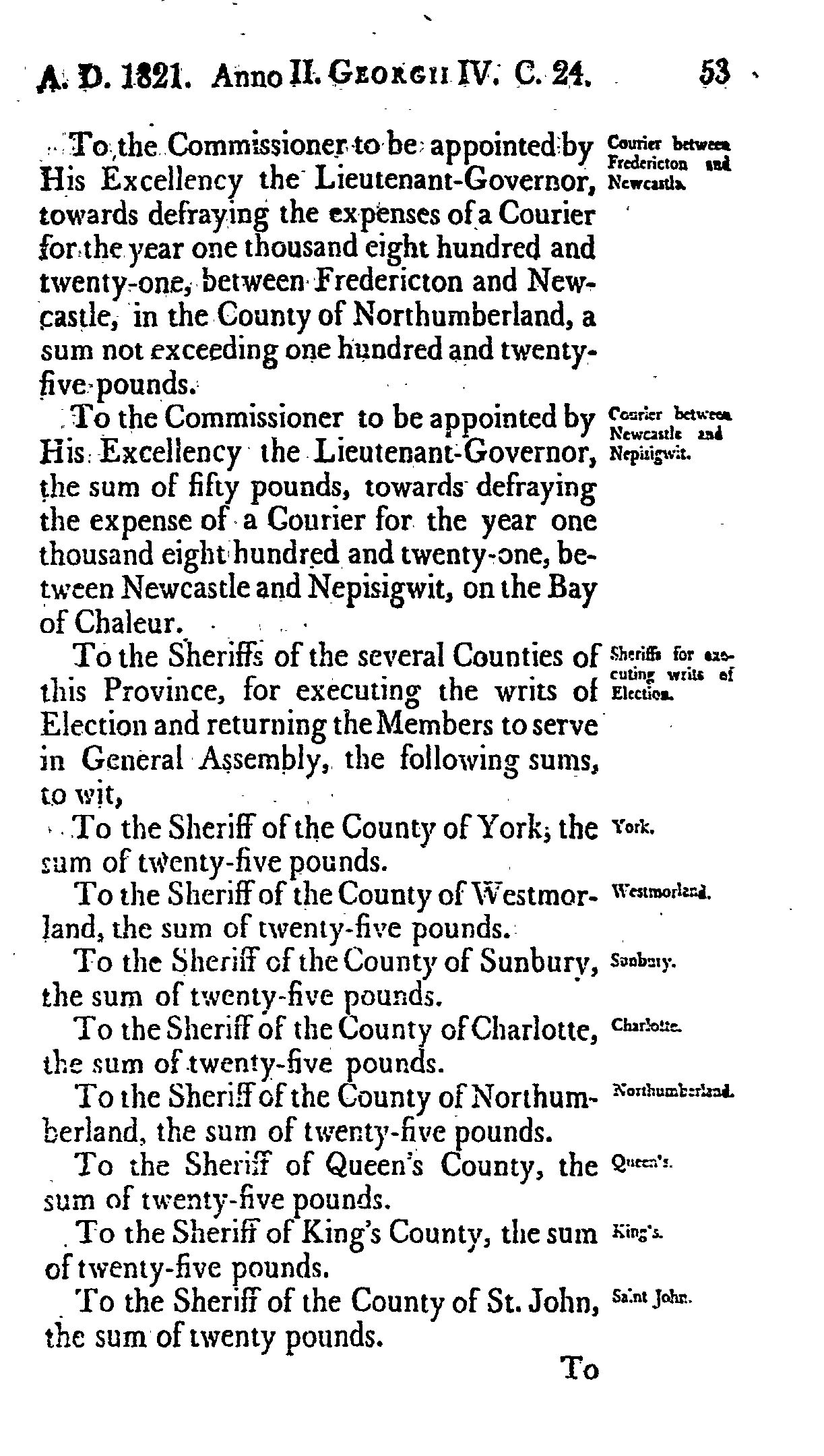 - Acts of the General Assembly of His Majesty's province of New-Brunswick passed in the year 1821 : 1821