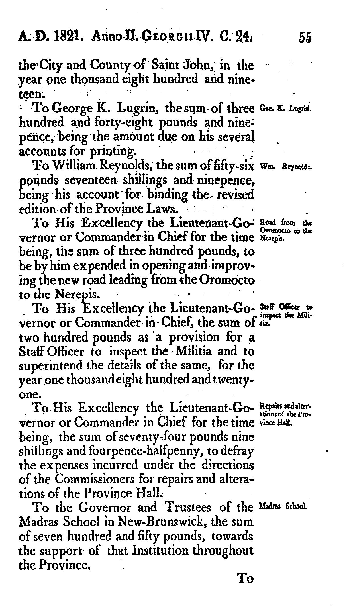 - Fredericton, N.B. : George K. Lugrin, 1821.
