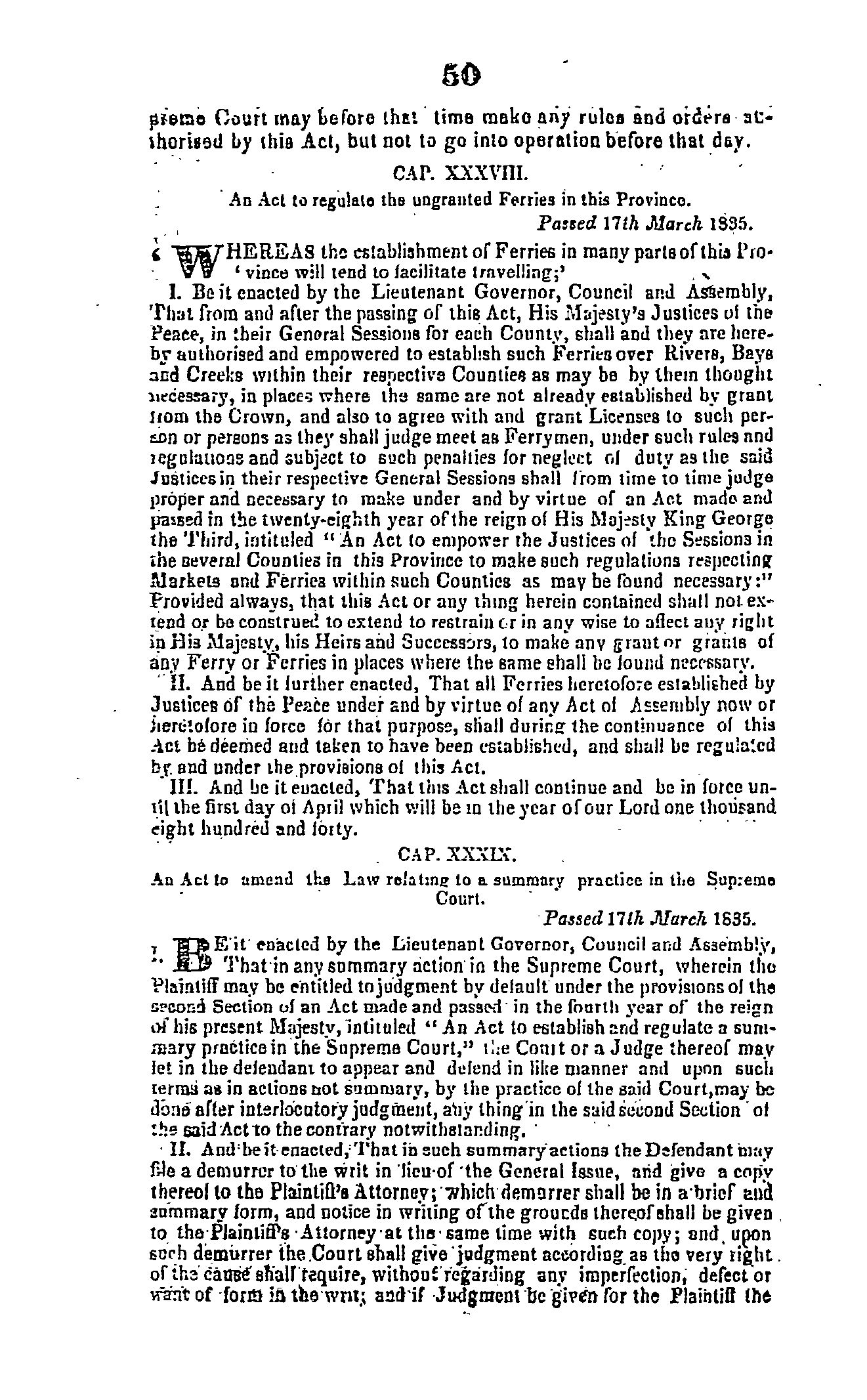- Acts of the General Assembly of His Majesty's Province of New-Brunswick passed in the year 1835 : 1835