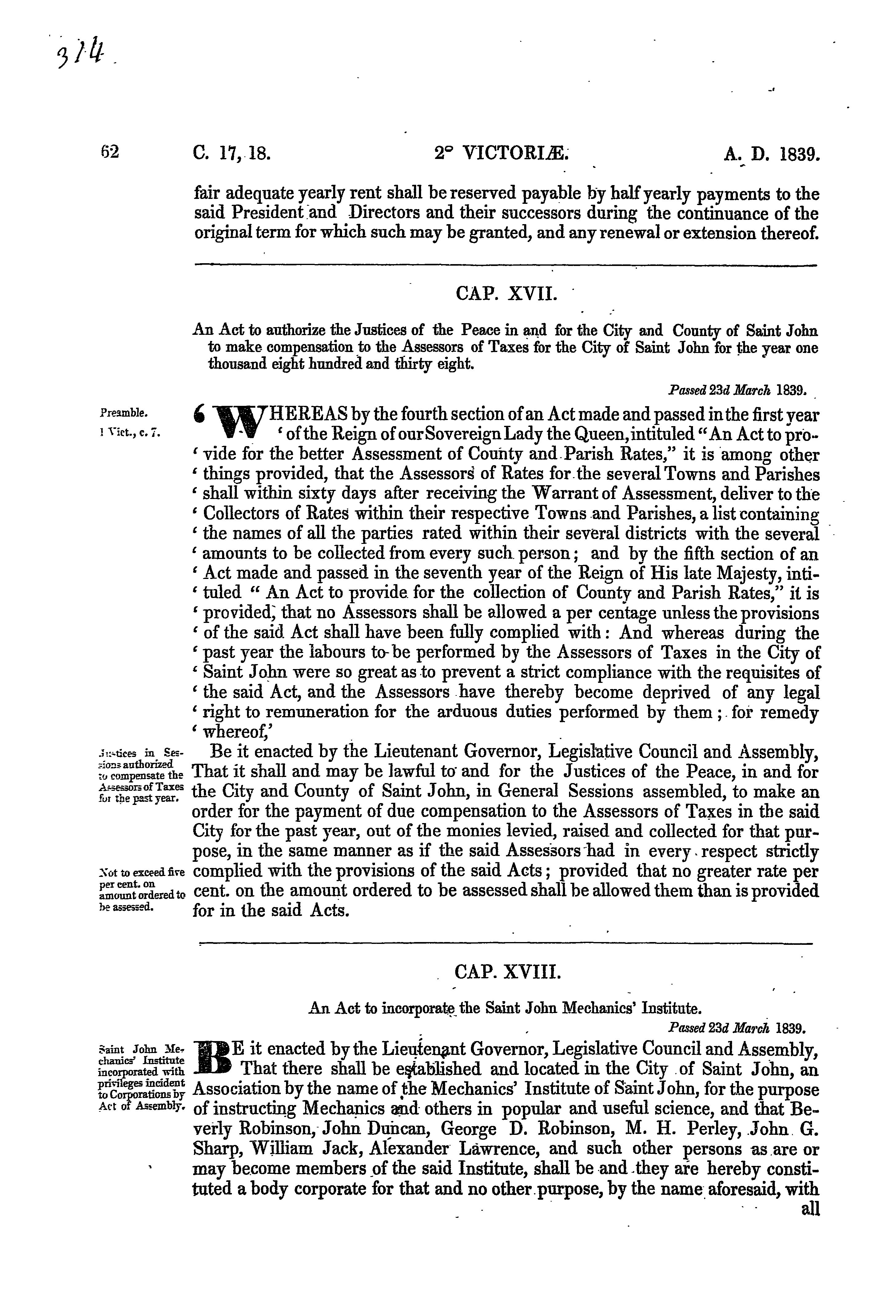 Acts of the General Assembly of Her Majesty's Province of New Brunswick passed in the year 1839 : 1839