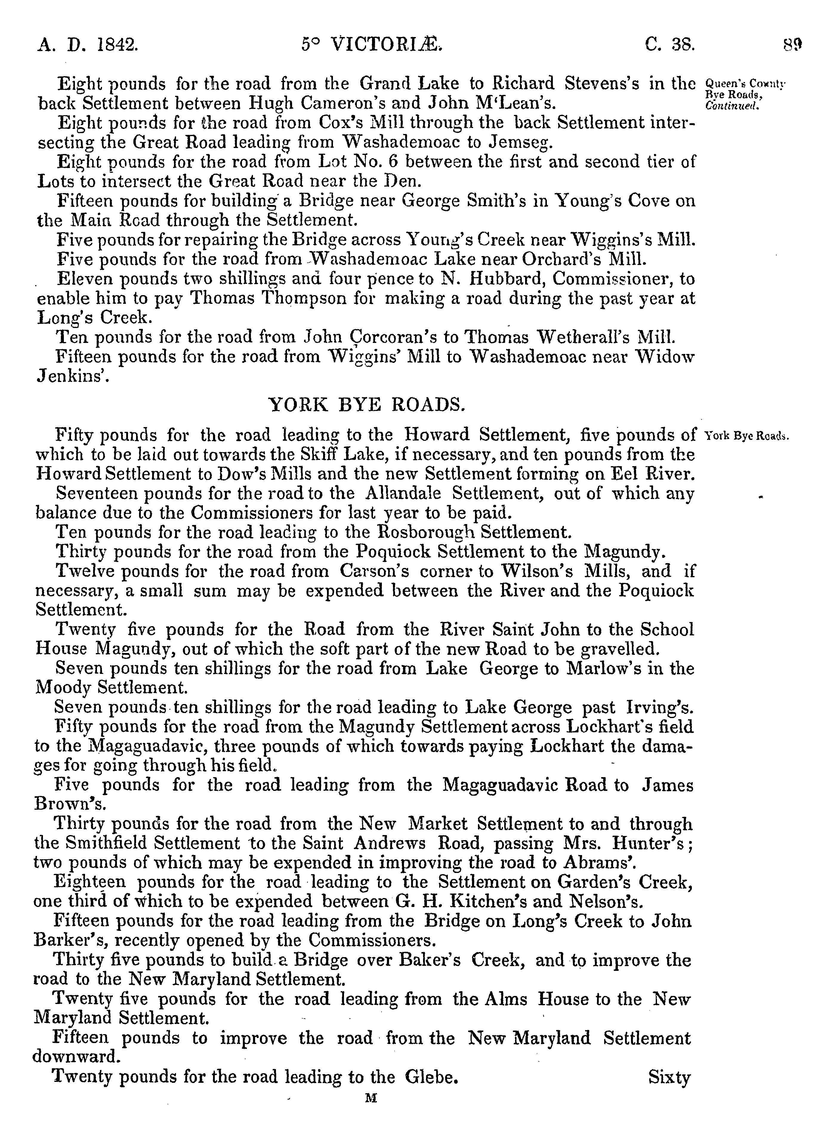 - Acts of the General Assembly of Her Majesty's province of New Brunswick passed in the year 1842 : 1842