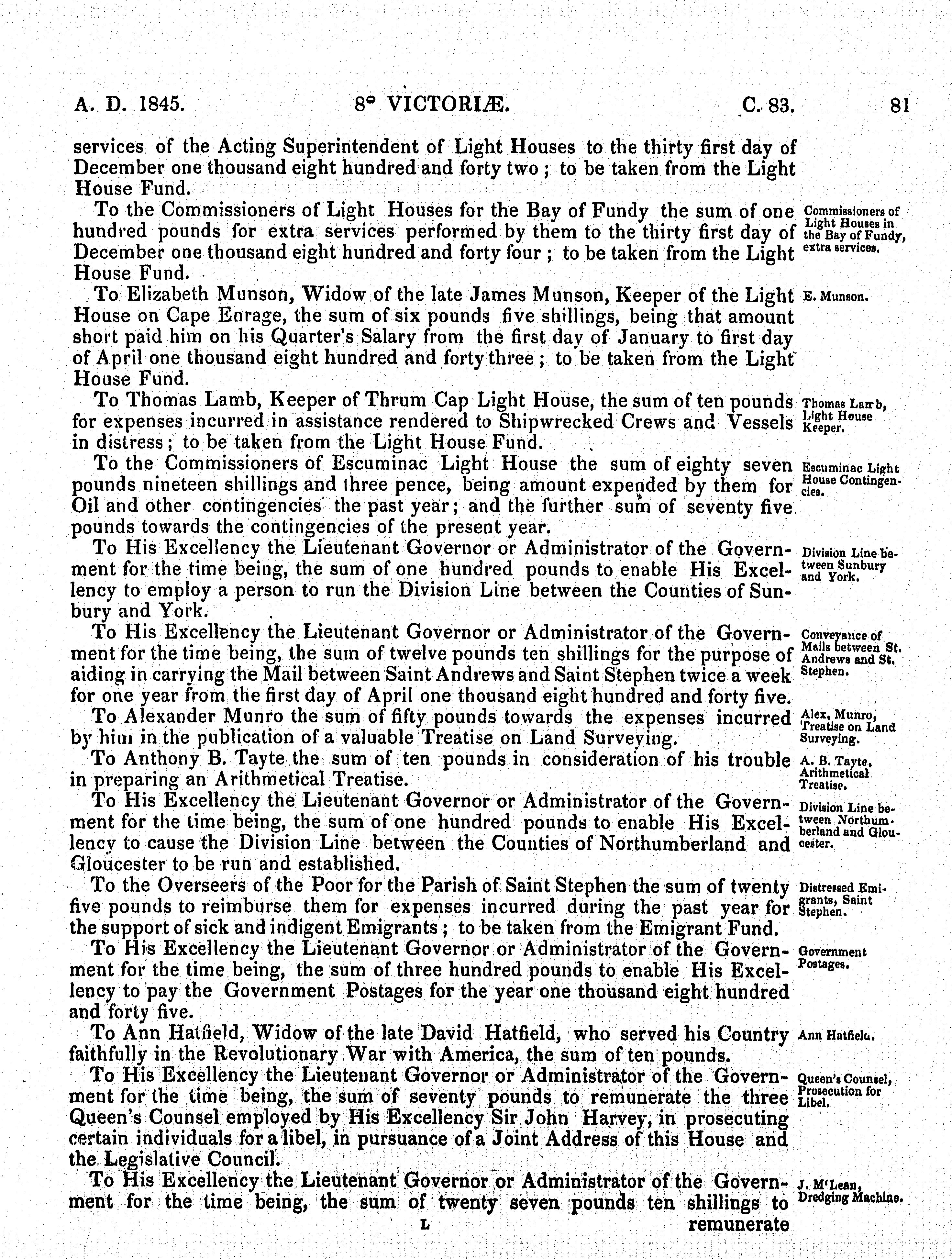 - Acts of the General Assembly of Her Majesty's province of New Brunswick passed in the year 1845 : 1845