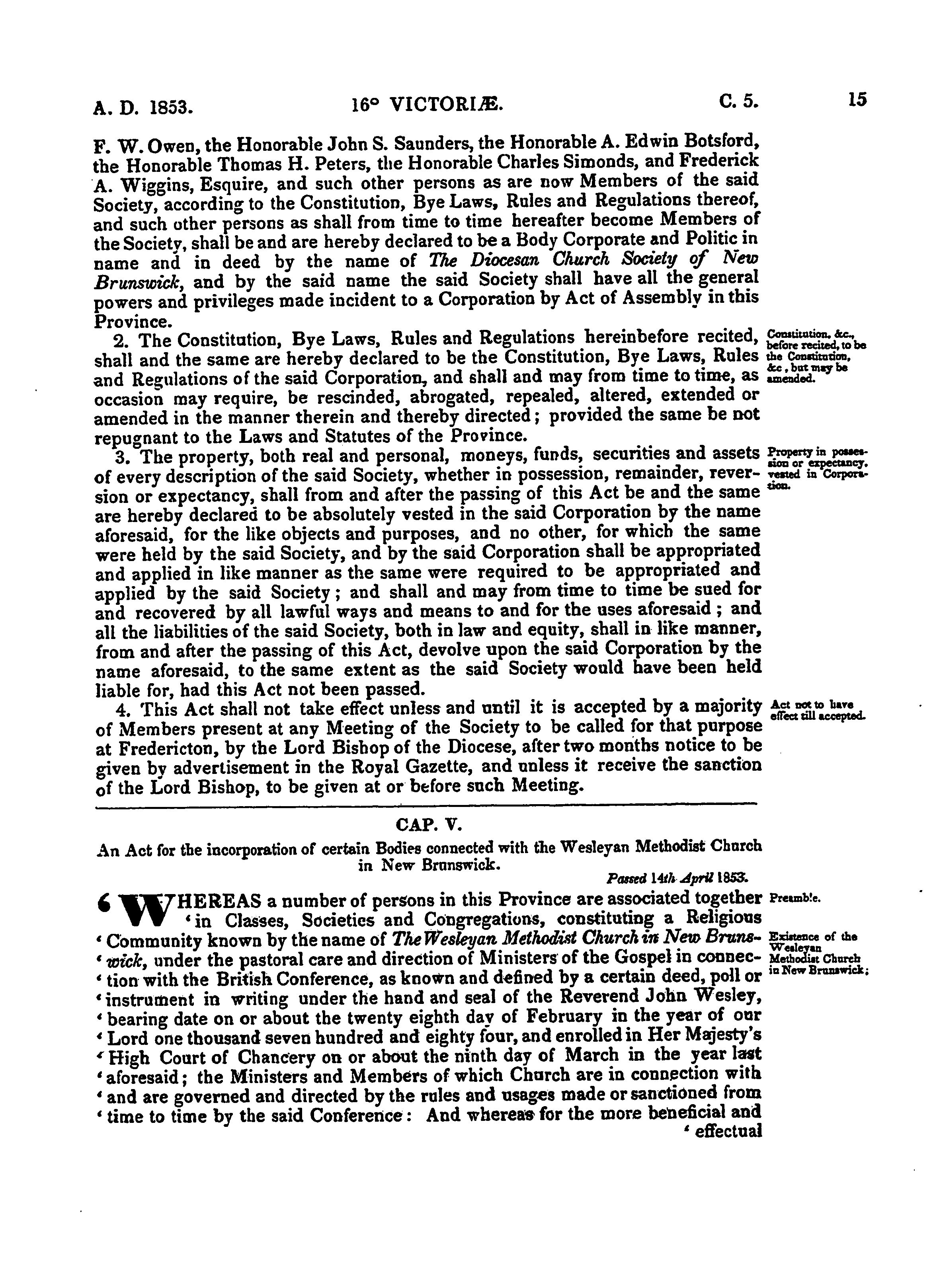 Acts of the General Assembly of Her Majesty's province of New Brunswick passed in the month of October, 1852 and in the months of April and May, 1853 : 1852/53