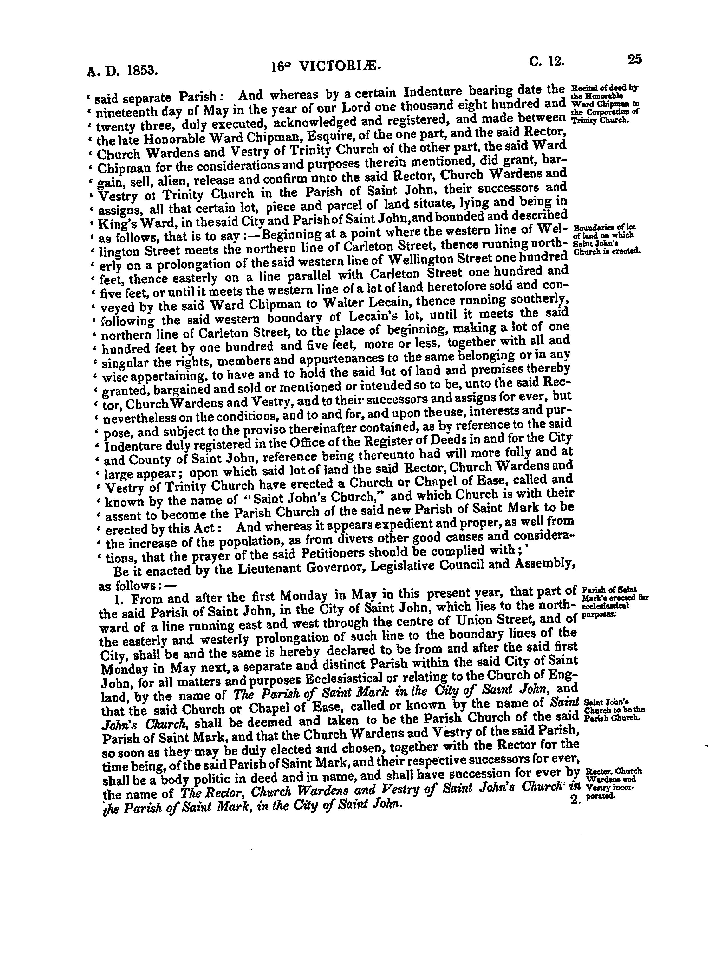 Acts of the General Assembly of Her Majesty's province of New Brunswick passed in the month of October, 1852 and in the months of April and May, 1853 : 1852/53
