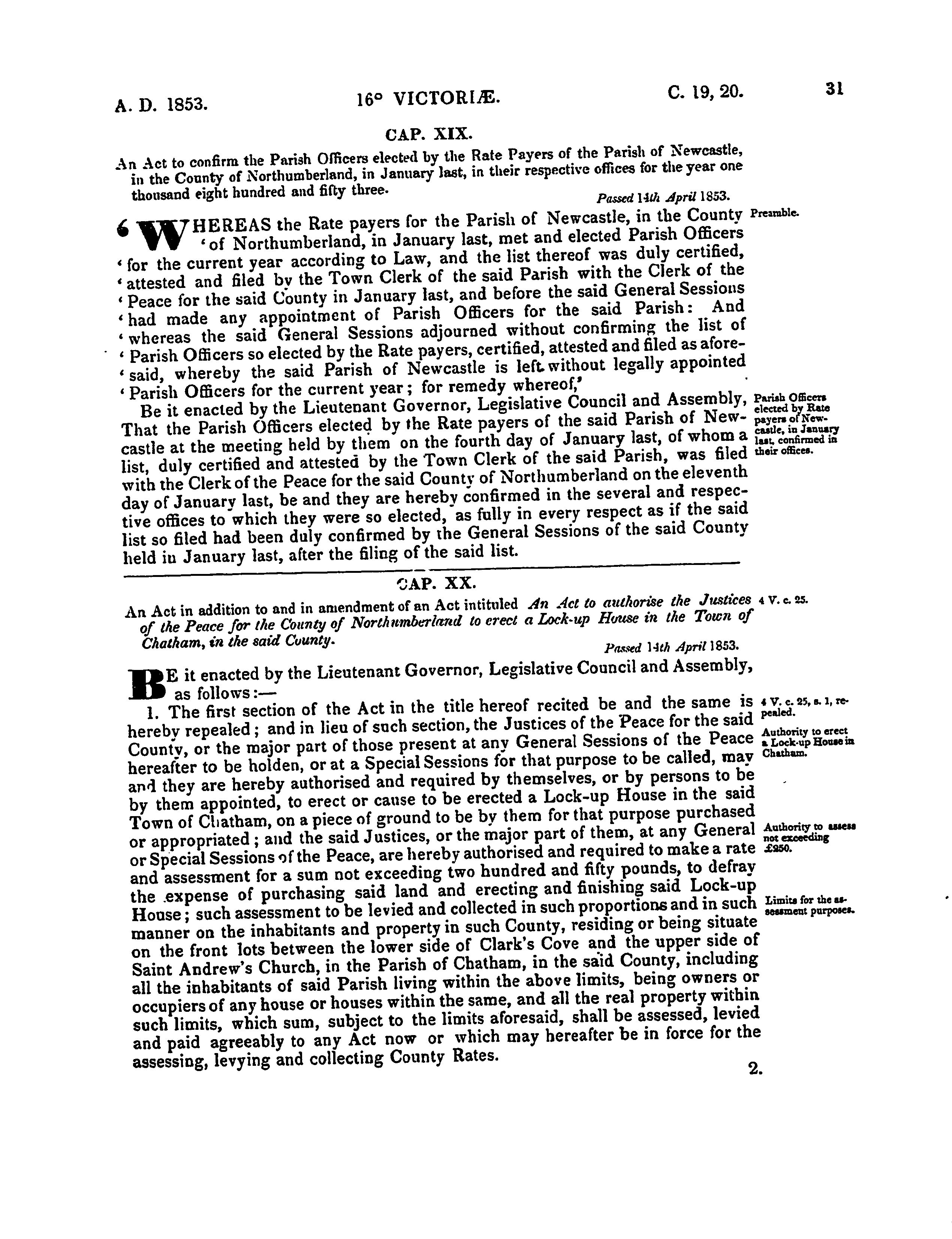 Acts of the General Assembly of Her Majesty's province of New Brunswick passed in the month of October, 1852 and in the months of April and May, 1853 : 1852/53