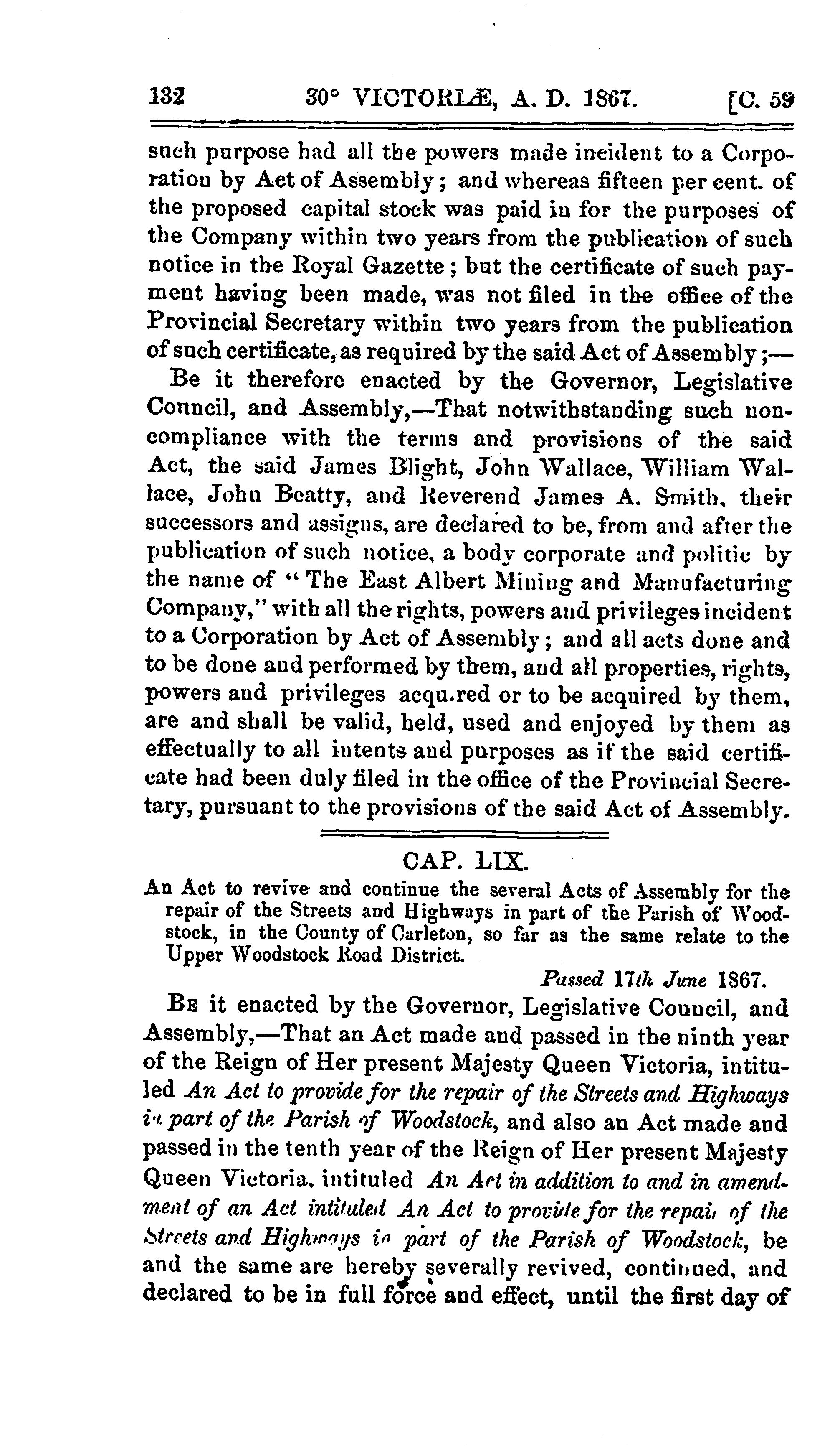 Acts of the General Assembly of Her Majesty's province of New Brunswick passed in the month of June, 1867 : 1867