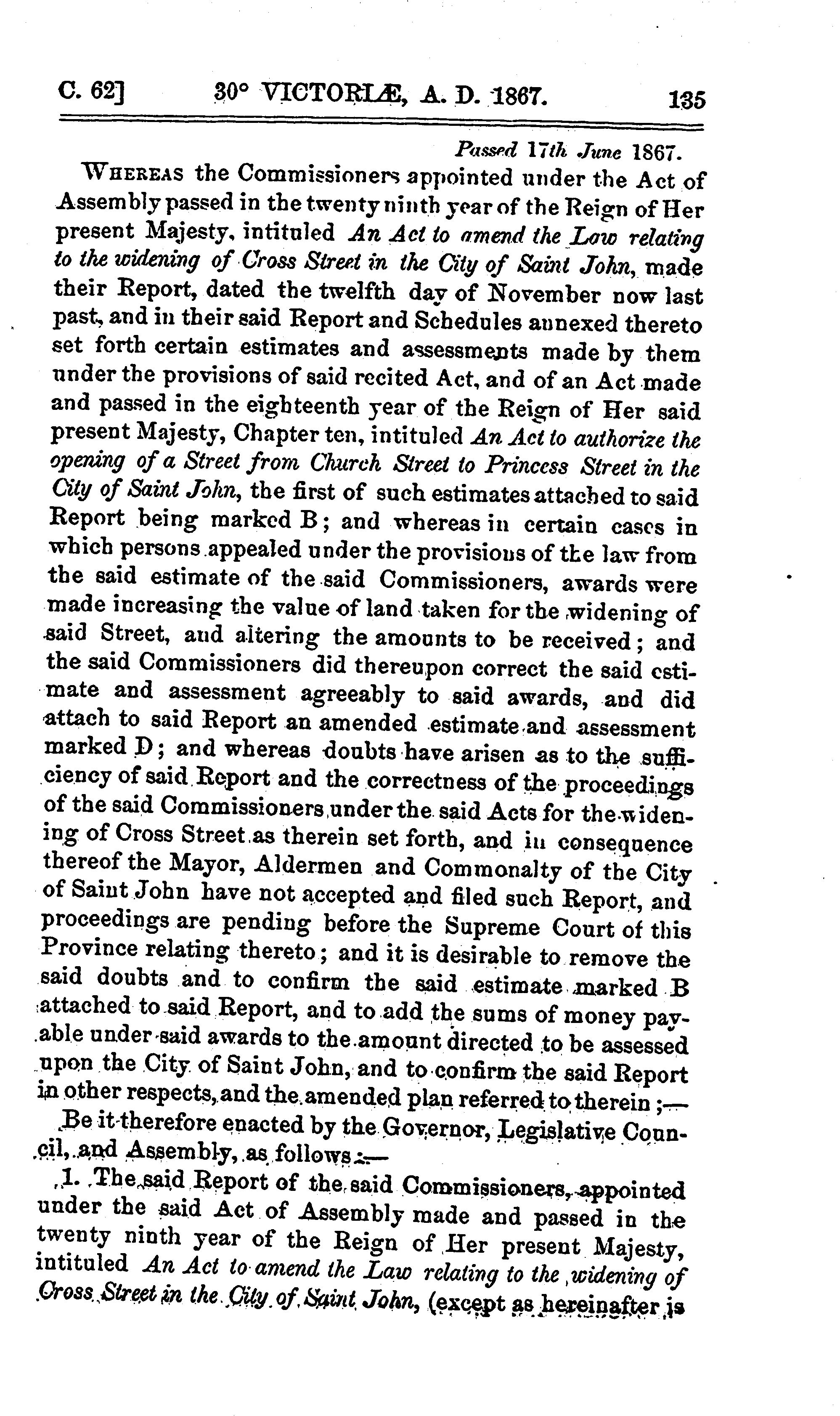 Acts of the General Assembly of Her Majesty's province of New Brunswick passed in the month of June, 1867 : 1867