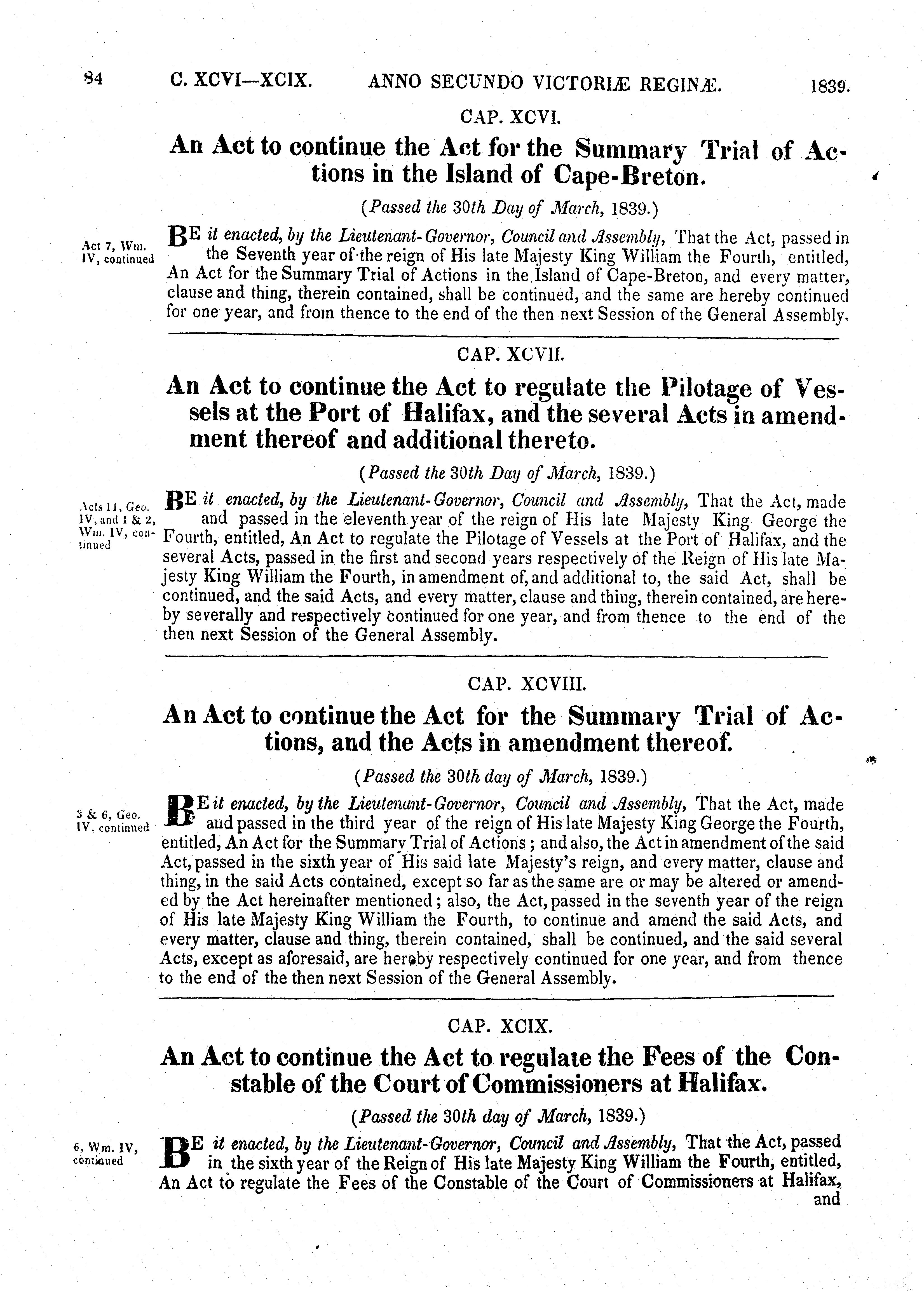- Acts of the General Assembly of the province of Nova-Scotia anno secundo Victoriae Reginae, 1839 : 1839