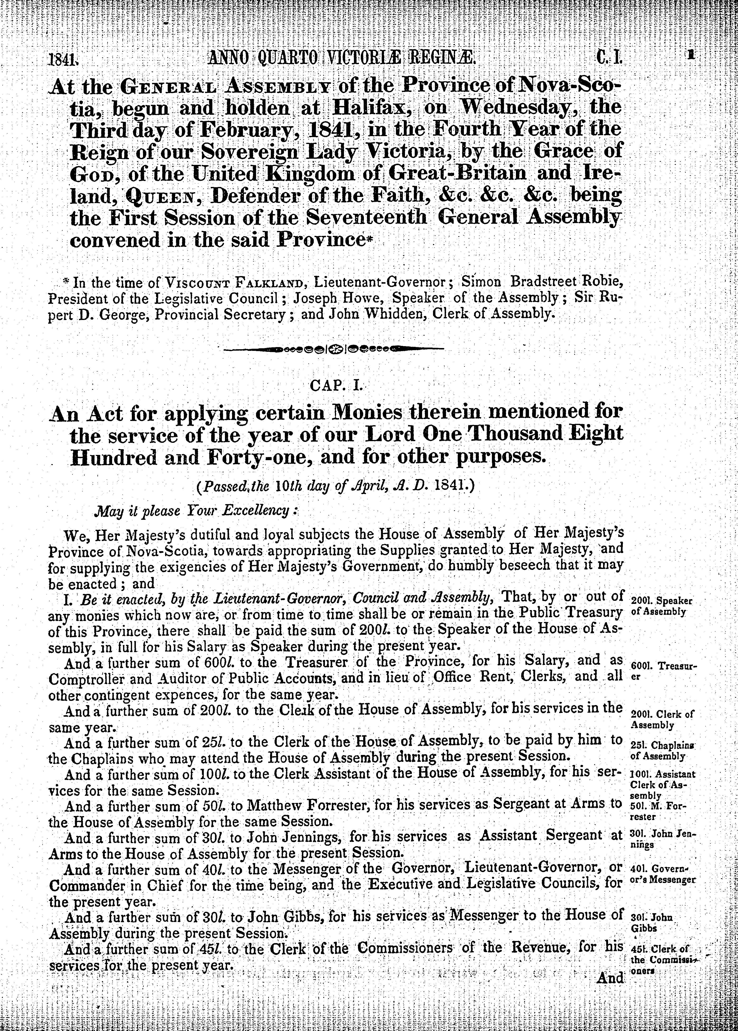 - Acts of the General Assembly of the province of Nova-Scotia anno quarto Victoriae Reginae, 1841 : 1841