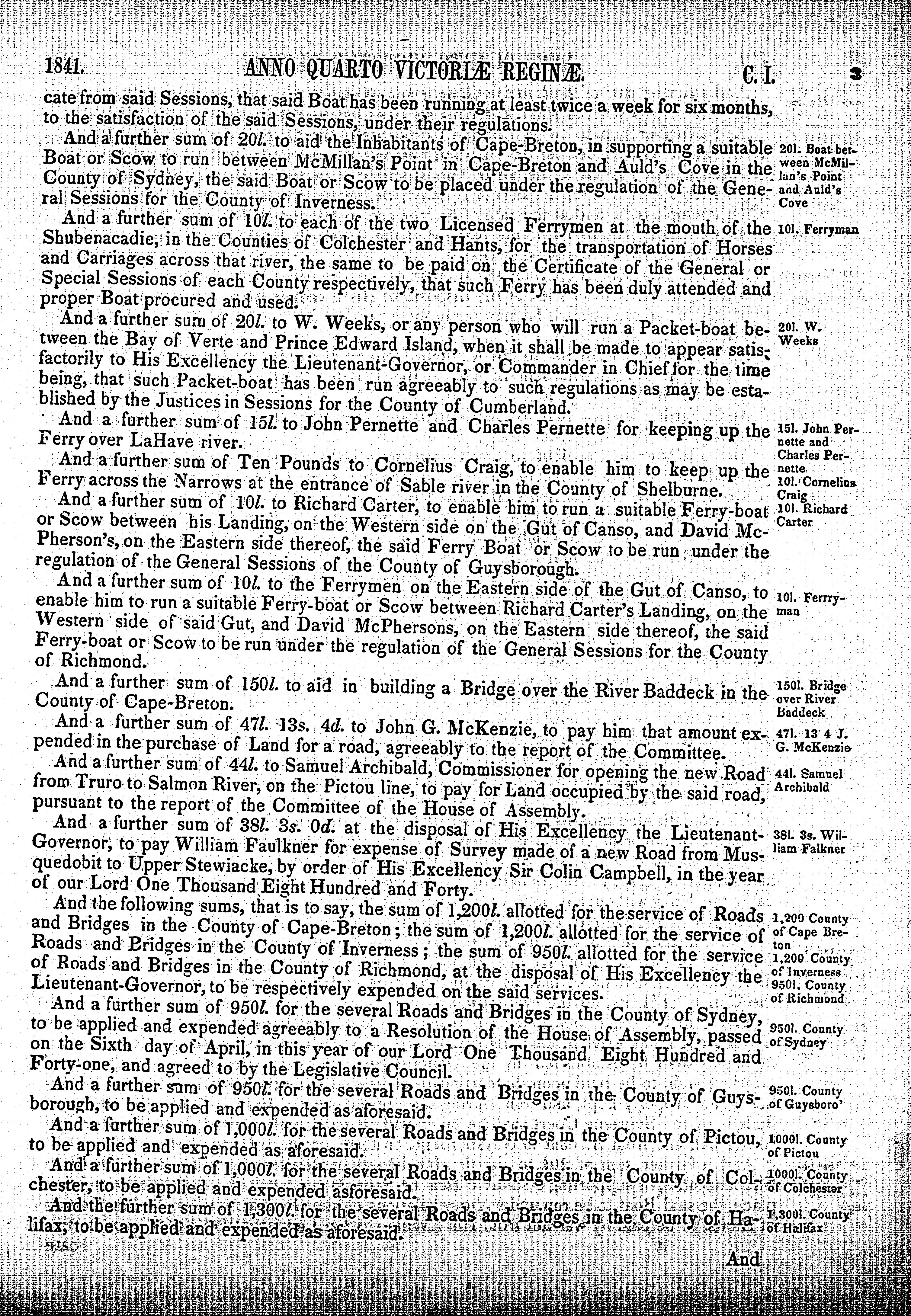 - Acts of the General Assembly of the province of Nova-Scotia anno quarto Victoriae Reginae, 1841 : 1841